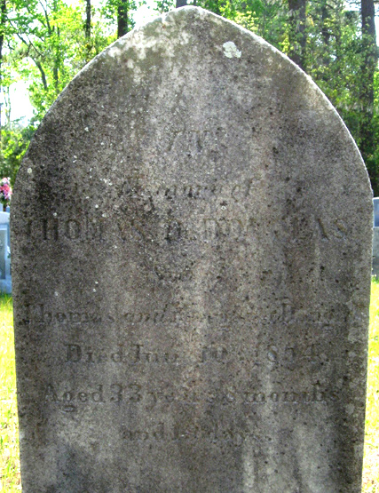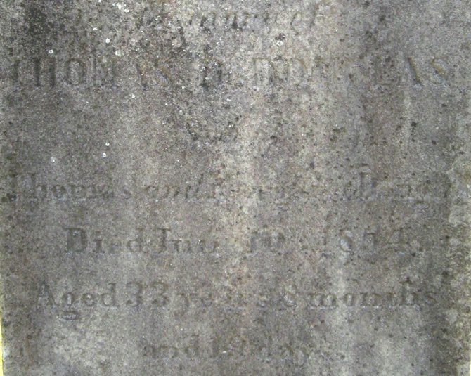 | Douglas, Thomas D. [Demsey] | [Sept. 21, 1820] | June 10, 1854 | In Memory Of - Son of Thomas and Margaret Douglas - Aged 33 years 8 months and 19? days [Closeup photo] |