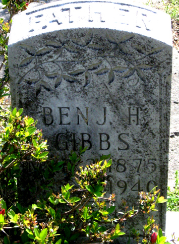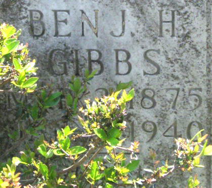 | Gibbs, Benj. H. [Harrison] | Mar. 2, 1875 | Jan. 21, 1940 | Father - At Rest [see death certificate] [Closeup photo] |