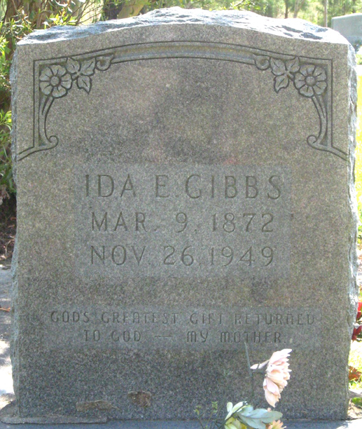 | Gibbs, Ida E. [Elizabeth] | Mar. 9, 1872 | Nov. 26, 1949 | God's great gift returned to God - My mother [death certificate states birth as Mar. 8, 1872.] |