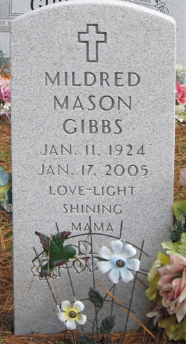 | Gibbs, Mildred Mason | Jan. 11, 1924 | Jan. 17, 2005 | Love-Light Shining - Mama [see obituary] |