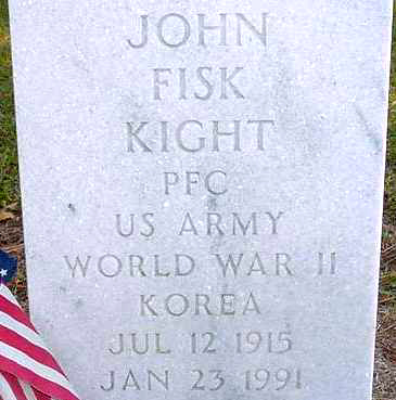| Kight, John Fisk | Jul. 12, 1915 | Jan. 23, 1991 | PFC US Army World War II Korea [closeup] [see obituary] |