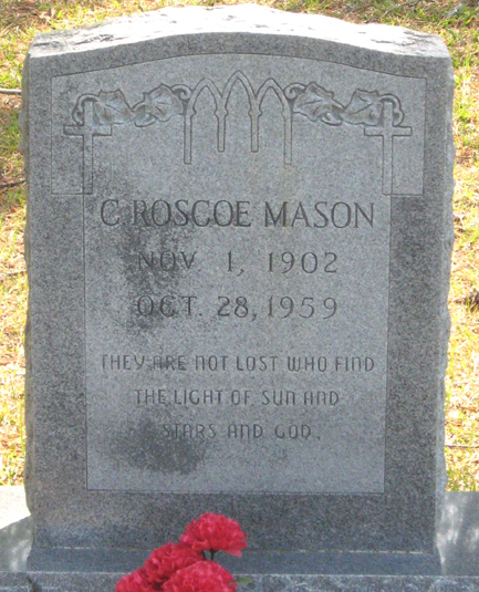 | Mason, C. [Christopher] Roscoe | Nov. 1, 1902 | Oct. 28, 1959 | They are not lost who find the light of sun and stars and God. |