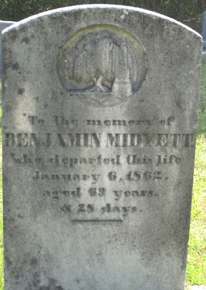 | Midyett, Benjamin | [Dec. 22, 1792] | January 6, 1862 | To the memory of - aged 69 years & 28 days. [another photo by Sandra Carawan] |