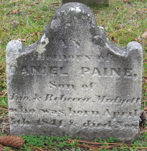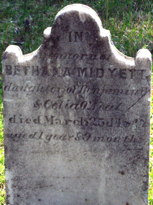 | Midyett, Daniel Paine | April 5th 1841 | [Nov. 28, 1841] | In memory of - Son of Jno. & Rebecca Midyett |