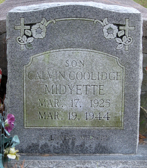 | Midyette, Calvin Coolidge | Mar. 17, 1925 | Mar. 19, 1944 | Son - In Loving Memory |