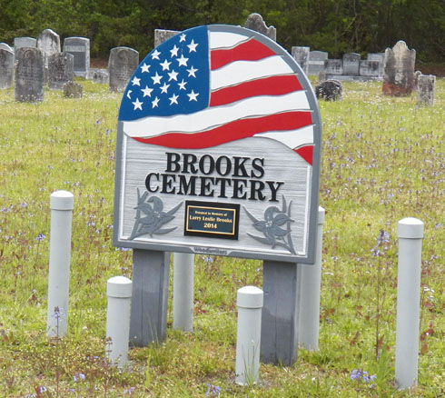 | Left overview photo taken in 2011 by Ken Mason. The deteriorated sign was replaced in 2014 by the sign on the right which was dedicated in memory of Larry Leslie Brooks by his wife, Margie Brooks. Right photo taken by Margie Brooks in 2016 | |