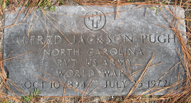 | Pugh. Alfred Jackson | Oct. 10, 1894 | July 25, 1972 | North Carolina; Pvt. US Army; World War I |