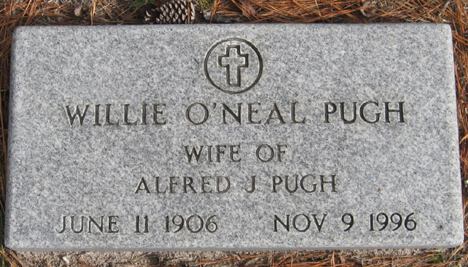 | Pugh, Willie O'Neal | June 11, 1906 | Nov. 9, 1996 | Wife of Alfred J. Pugh [see obituary] [see photo of Willie] |