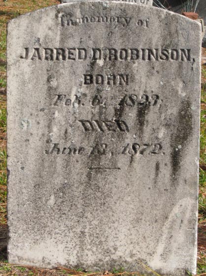 | Robinson, Jarred D. [Dickinson] | Feb. 6, 1823 | June 13, 1872 | In memory of - [another photo by Sandra Carawan] |