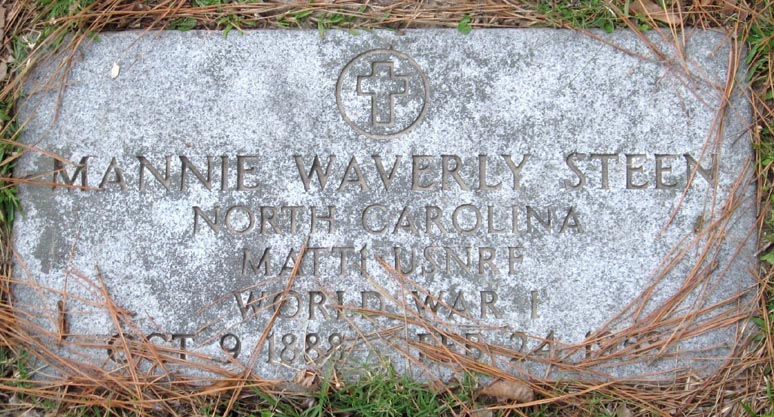 | Steen, Mannie W. [Waverly] | Oct. 9, 1888 | Feb. 24, 1958 | In Loving Memory [Double with Martha W. Steen] [Military stone] |