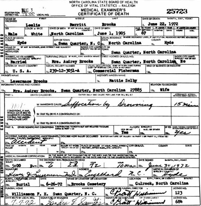 | Brooks, Leslie Merritt | June 1, 1905 | June 22, 1972 | [see death certificate] |