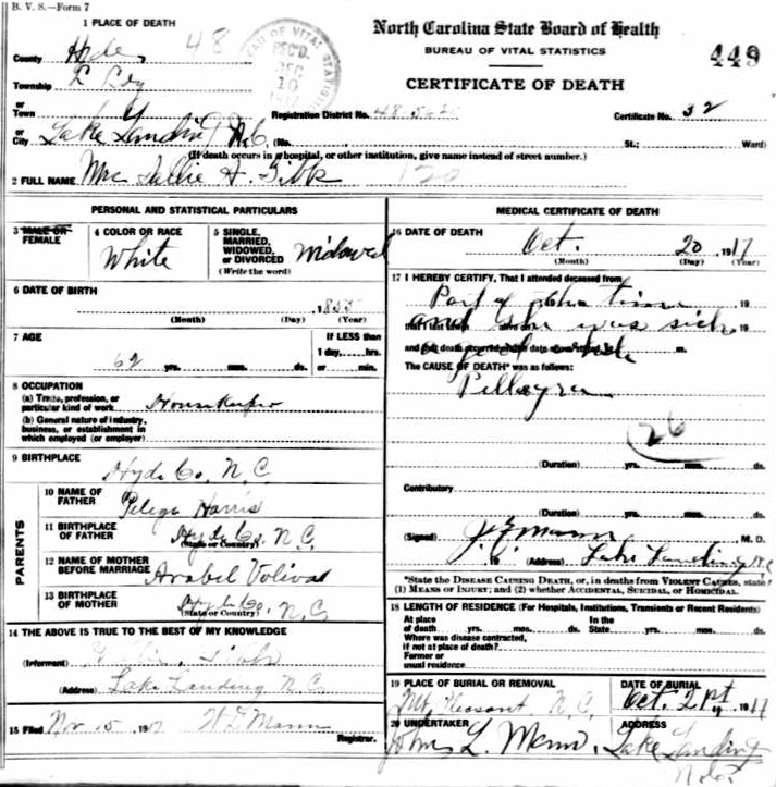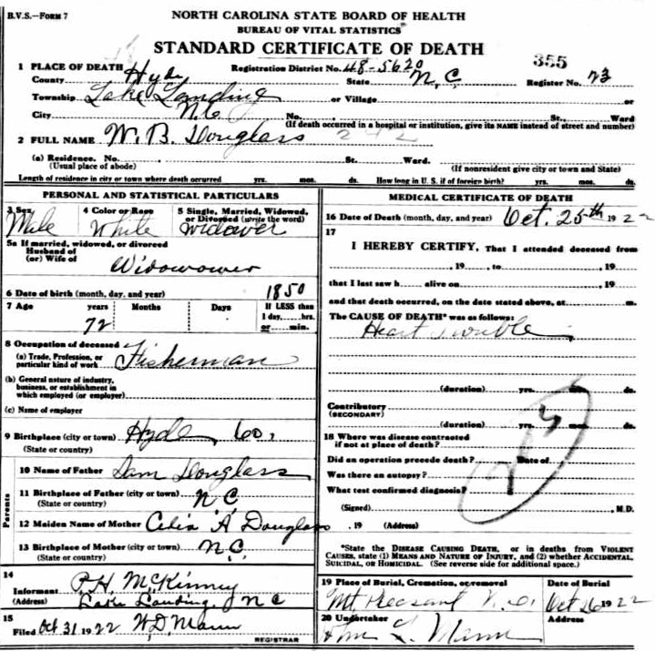 | Douglass, Patsy Jones | 1868 | Aug. 19, 1904 | [Patsy Hamilton, age 19, married Wm. Harrison Douglass, age 40 in Hyde Co. on Oct. 9, 1885 - 1880 census states Patsy E., age 12; 1900 census states birth date as April 1870] |