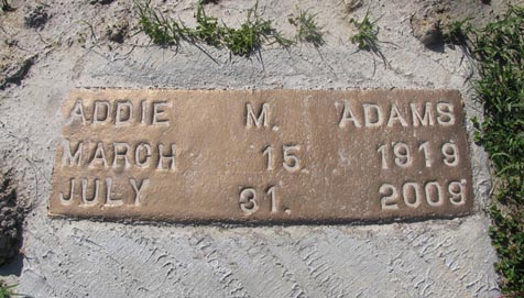| Adams, Addie M. | March 15, 1919 | July 31, 2009 | |