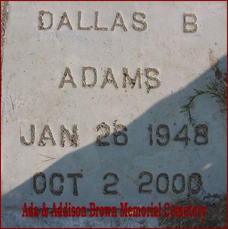 | Adams, Dallas B. [Bernard] | Jan. 26, 1948 | Oct. 2, 2000 | [see obituary] |