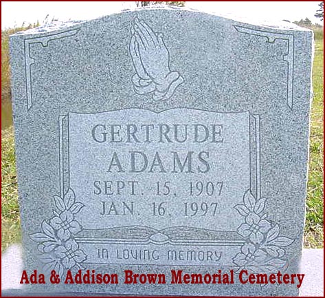 | Adams, Gertrude | Sept. 15, 1907 | Jan. 16, 1997 | In Loving Memory [see obituary] |