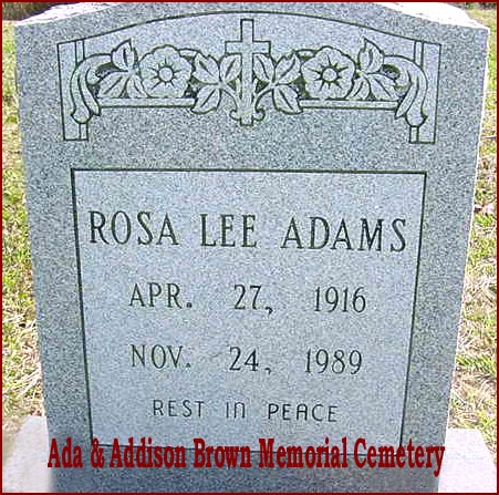 | Adams, Rosa Lee | Apr. 27, 1916 | Nov. 24, 1989 | Rest in Peace |
