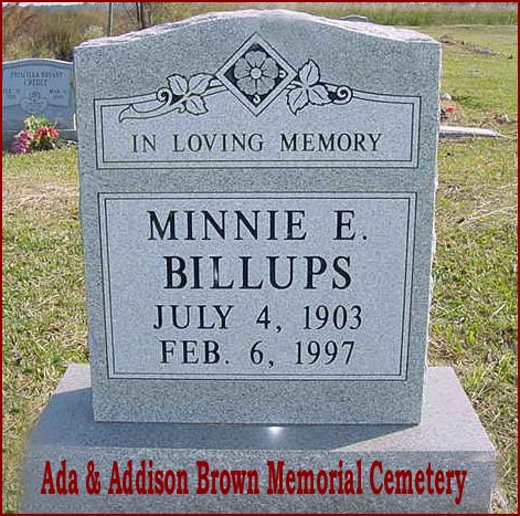 | Billups, Minnie E. | July 4, 1903 | Feb. 6, 1997 | In Loving Memory - [see obituary] |