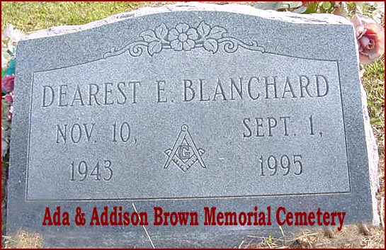 | Blanchard, Dearest E. | Nov. 10, 1943 | Sept. 1, 1995 | [Masonic Emblem on Headstone] |
