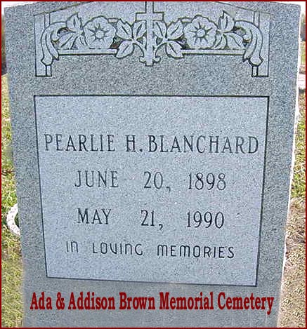 | Blanchard, Pearlie H. | June 20, 1898 | May 21, 1990 | In Loving Memories [see obituary] |