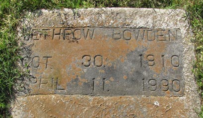 | Bowden, Jethrow | Oct. 30, 1910 | April 11, 1990 | |
