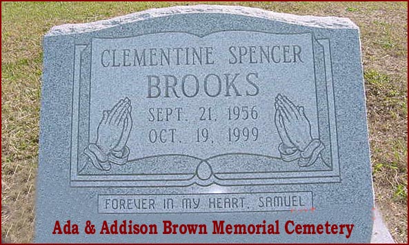 | Brooks, Clementine Spencer | Sept. 21, 1956 | Oct. 19, 1999 | Forever In My Heart. Samuel |