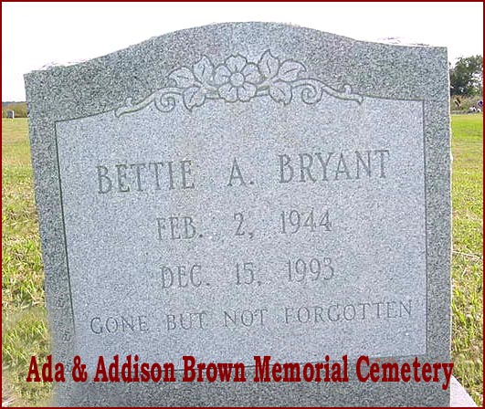 | Bryant, Bettie A. | Feb. 2, 1944 | Dec. 15, 1993 | Gone But Not Forgotten |