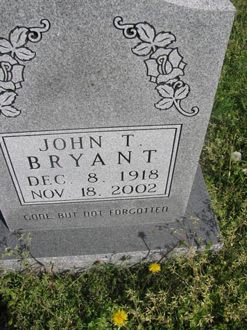 | Bryant, John T. | Dec. 8, 1918 | Nov. 18, 2002 | Gone but not forgotten |