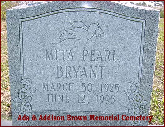 | Bryant, Meta Pearl | March 30, 1925 | June 12, 1995 | [see obituary] |