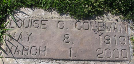 | Coleman, Louise C. | May 8, 1913 | March 1, 2000 | |