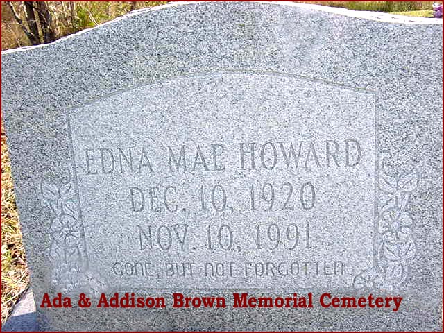 | Howard, Edna Mae | Dec. 10, 1920 | Nov. 10, 1991 | Gone, but not forgotten |