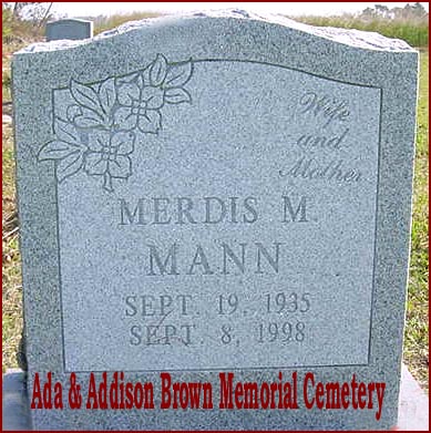 | Mann, Merdis M. | Sept. 19, 1935 | Sept. 8, 1998 | Wife and Mother |