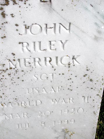 | Merrick, John Riley | Mar. 20, 1920 | Jul. 8, 1999 | Sgt. USAAF World War II |