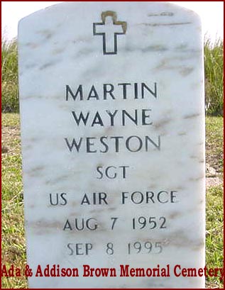 | Weston, Martin Wayne | Aug. 7, 1952 | Sep. 8, 1995 | Sgt. US Air Force |