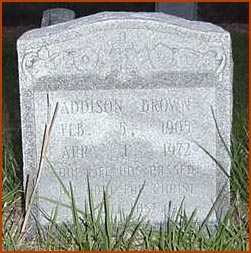 | Brown, Addison | Feb. 5, 1905 | Apr. 1, 1972 | One life has passed all that was done for Christ will last. [see death certificate] |