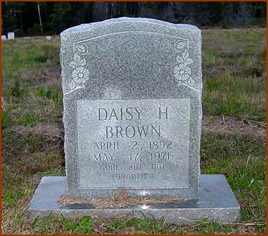 | Brown, Daisy H. (male) | April 2, 1892 | May 17, 1971 | Gone But Not Forgotten [death certificate states birth as April 2, 1897] |