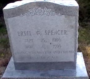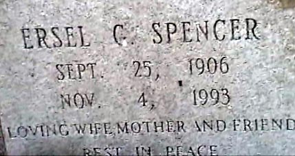 | Spencer, Ersel G. | Sept. 25, 1906 | Nov. 4, 1993 | Loving wife, mother and friend - Rest in peace. [seecloseup] |