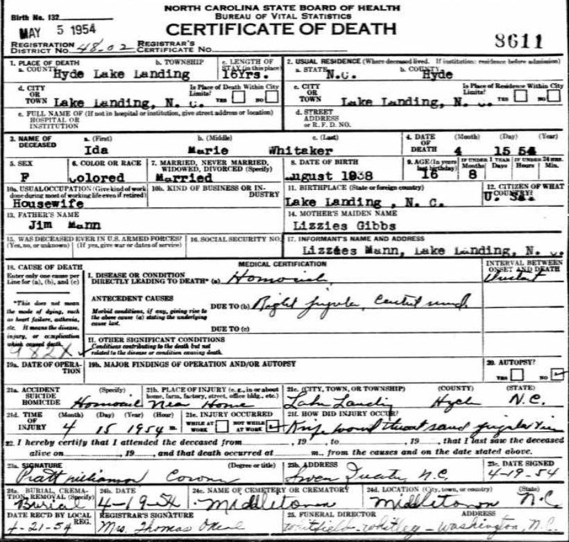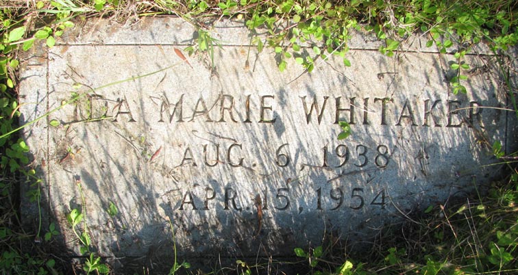 | Whitaker, Ida Marie | Aug. 6, 1938 | Apr. 15, 1954 | [see death certificate] |