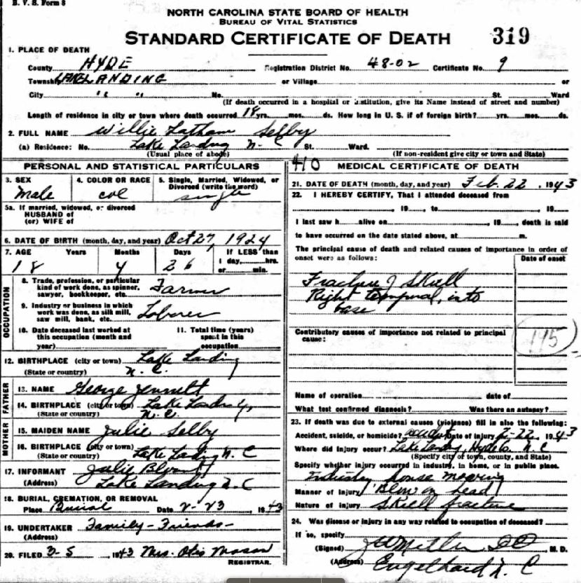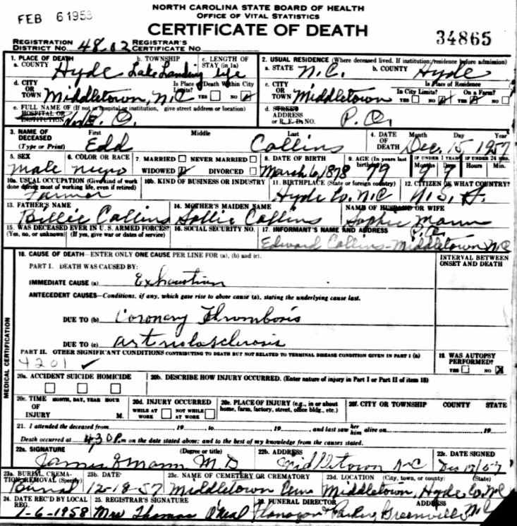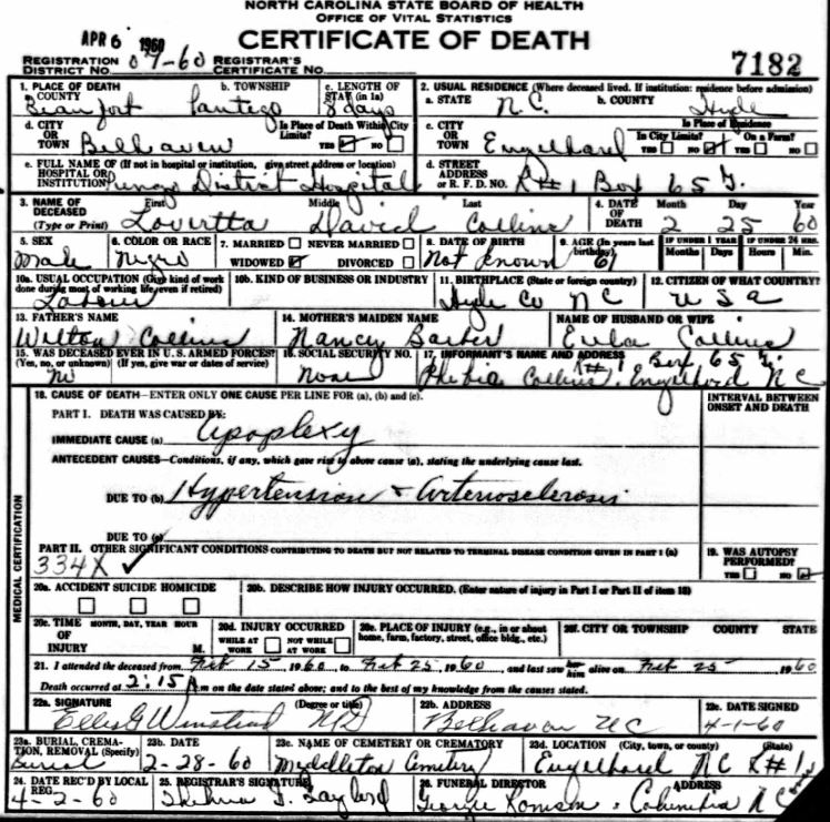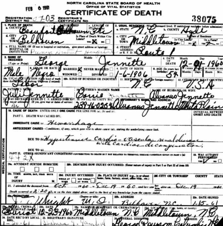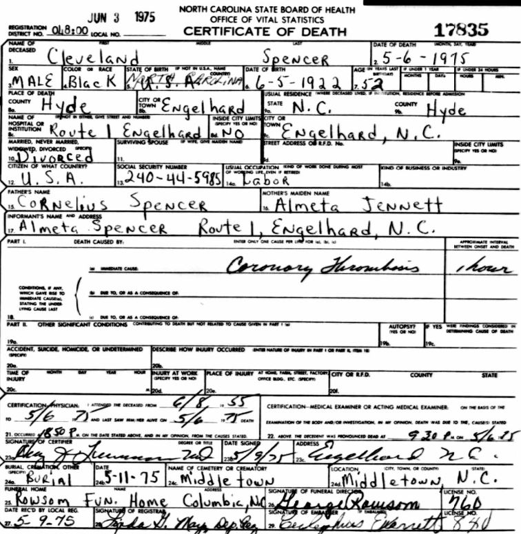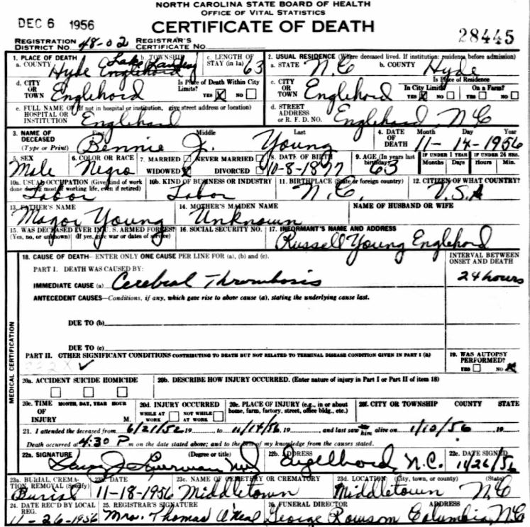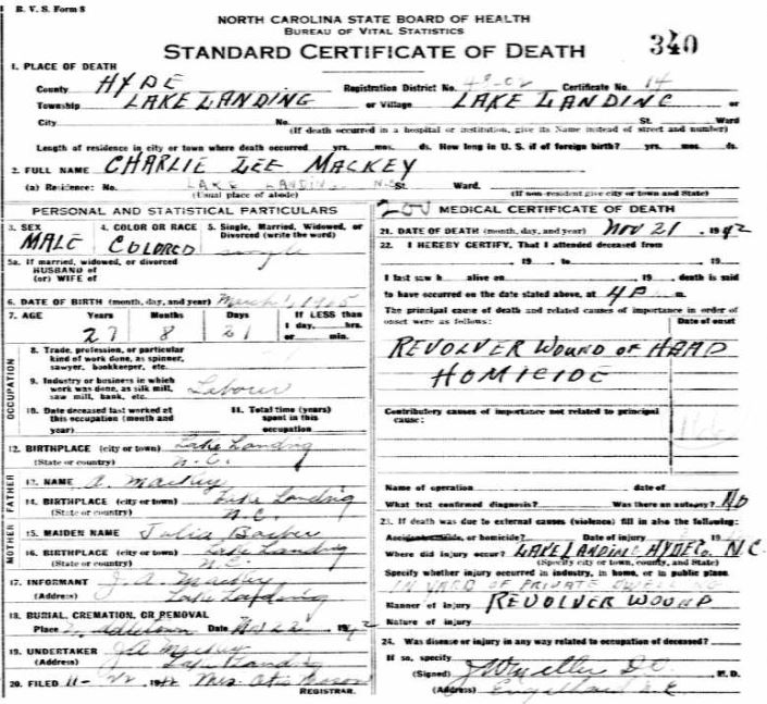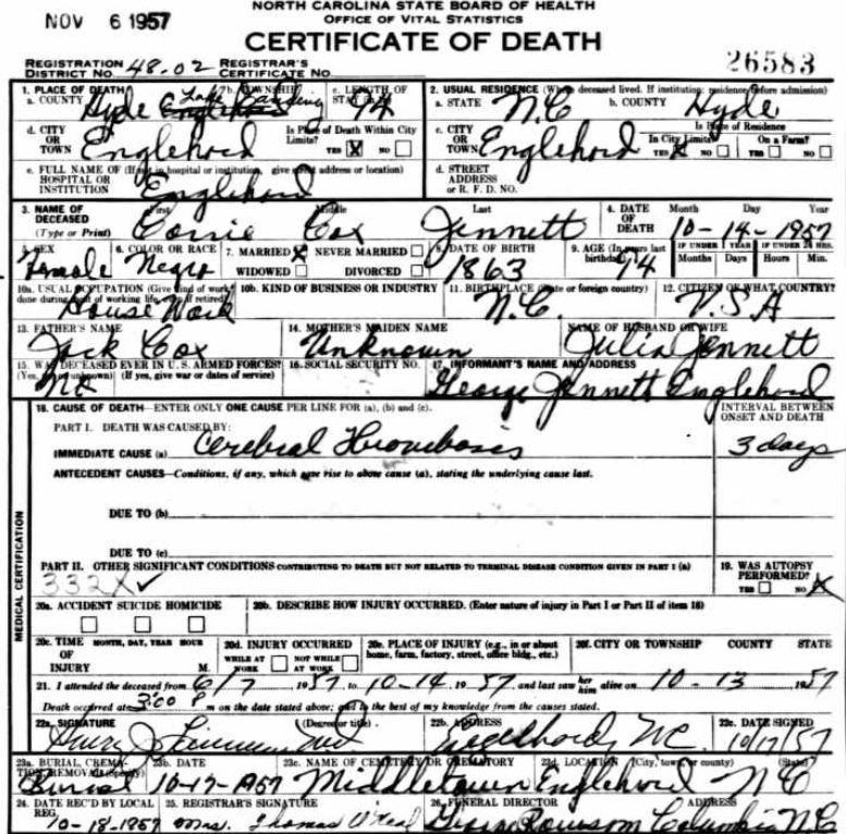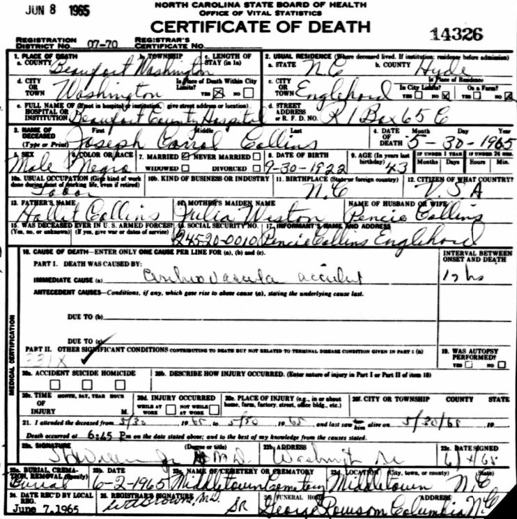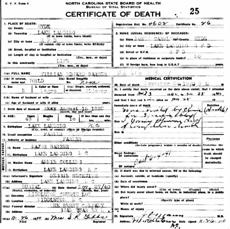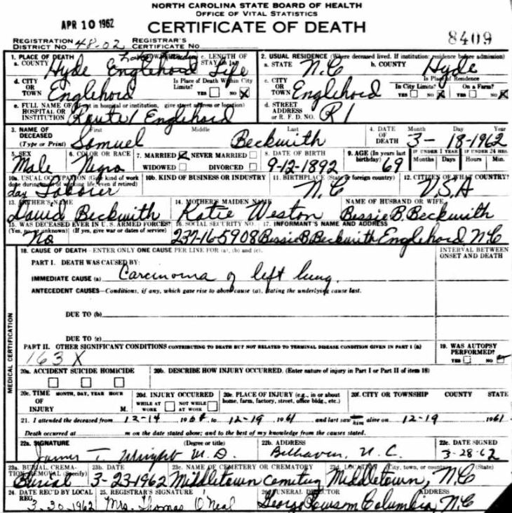 Nov. 25, 1940 | North Carolina Cook 347 Serv. En. QMC [see death certificate] |