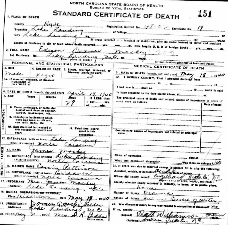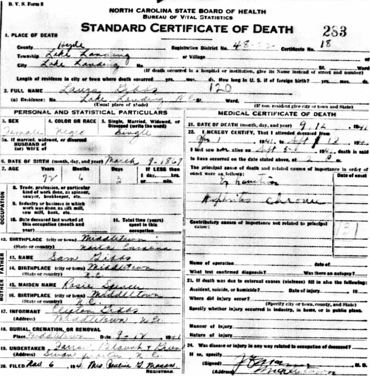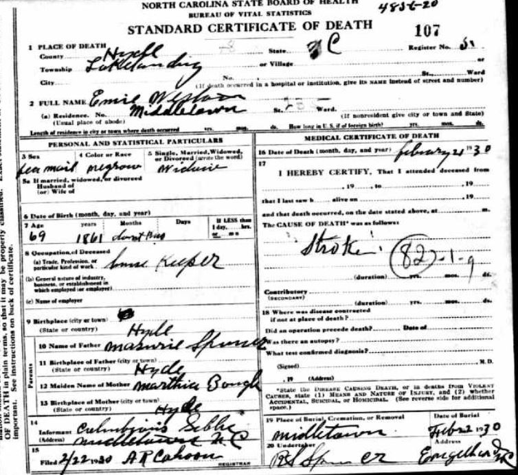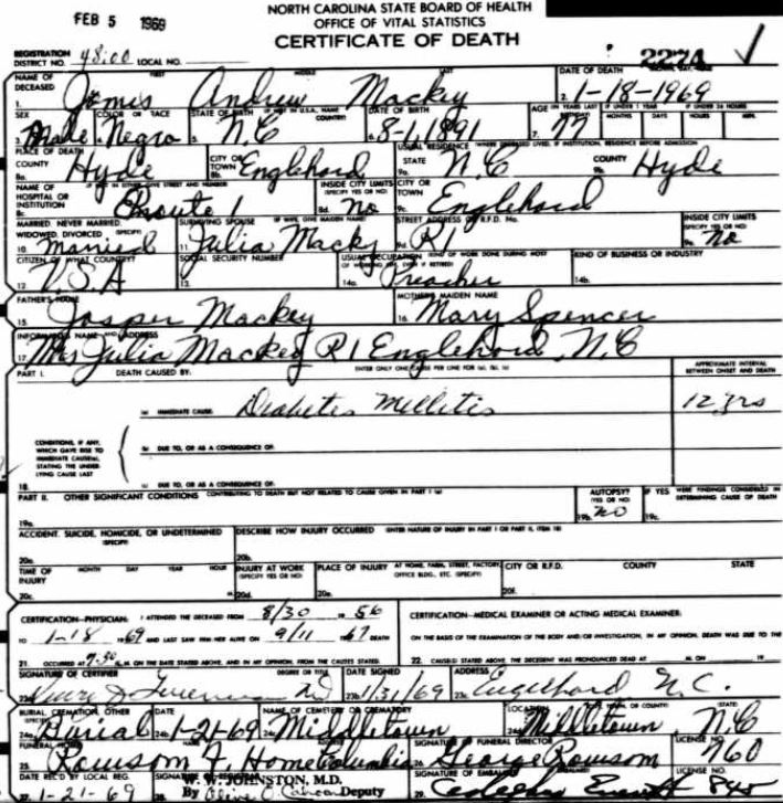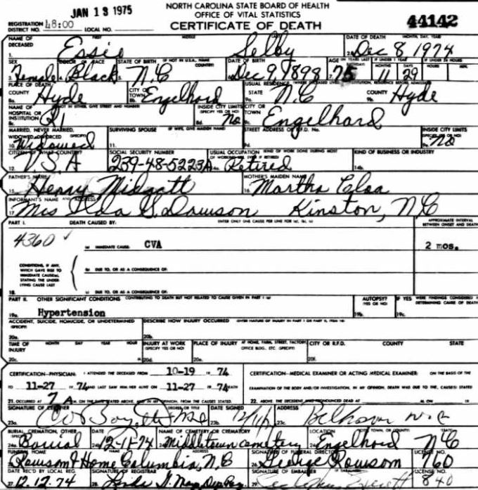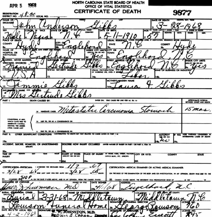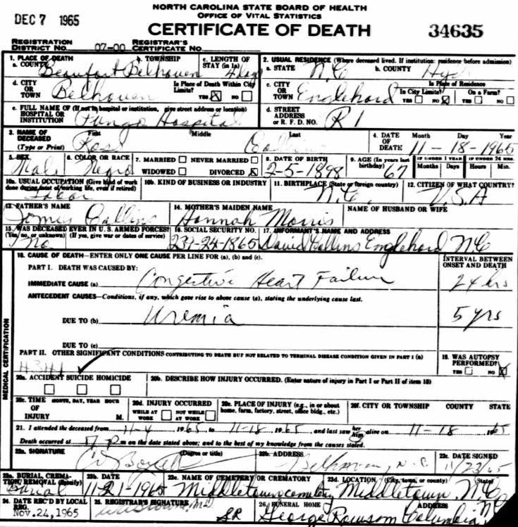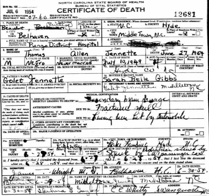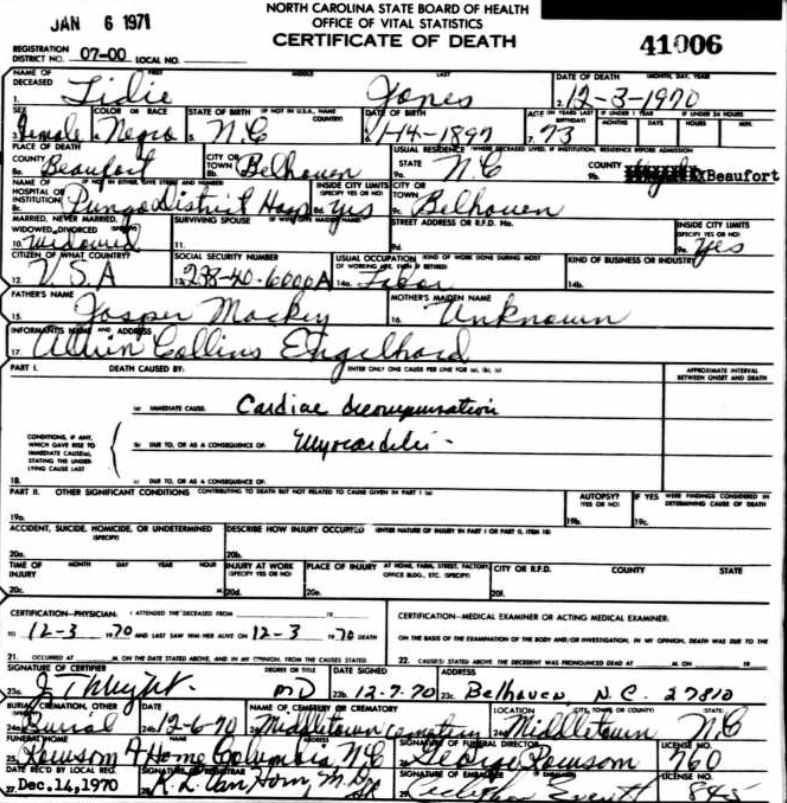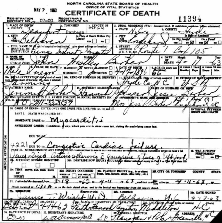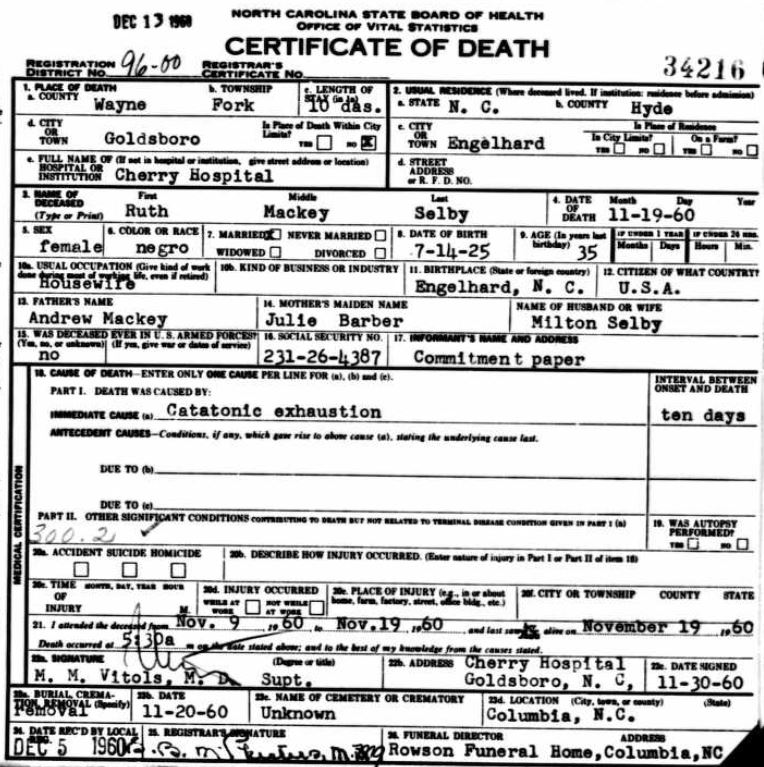 Nov. 25, 1940 | North Carolina Cook 347 Serv. En. QMC [see death certificate] |