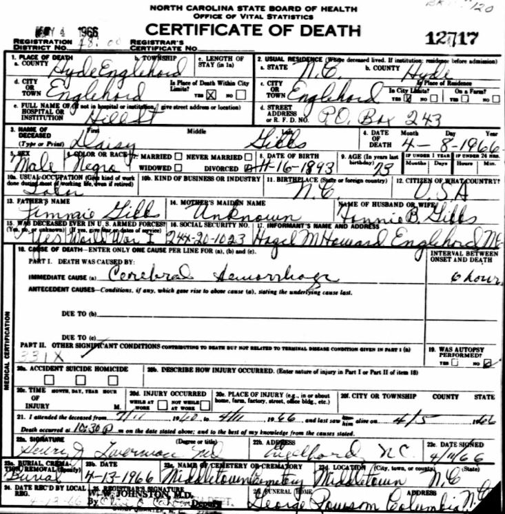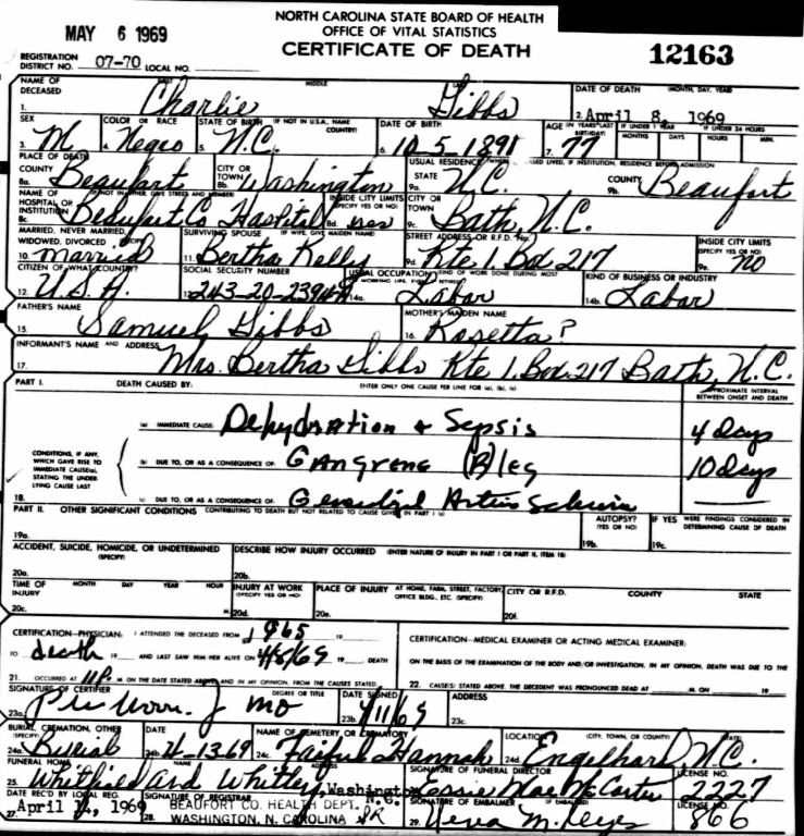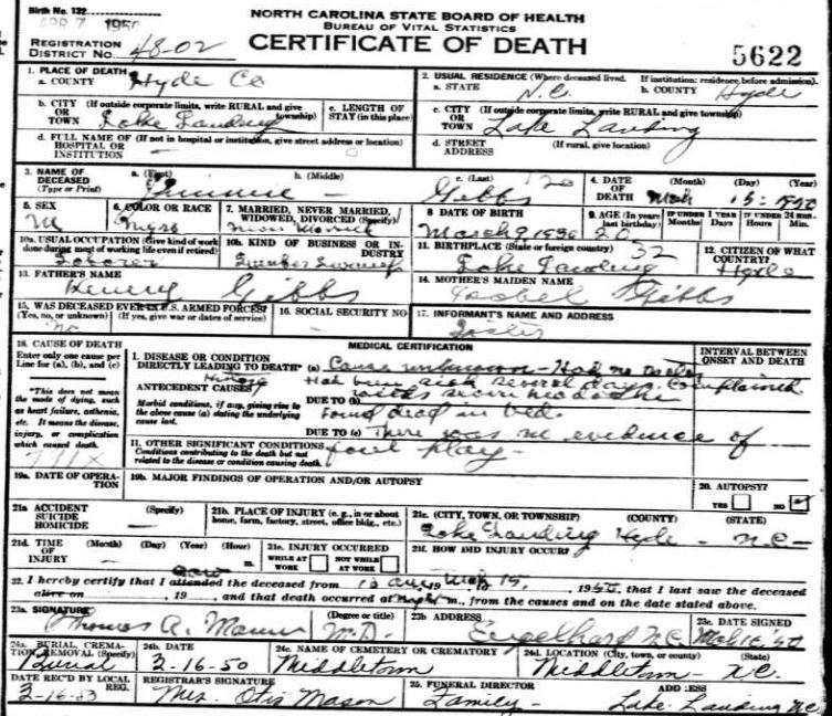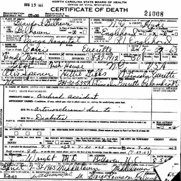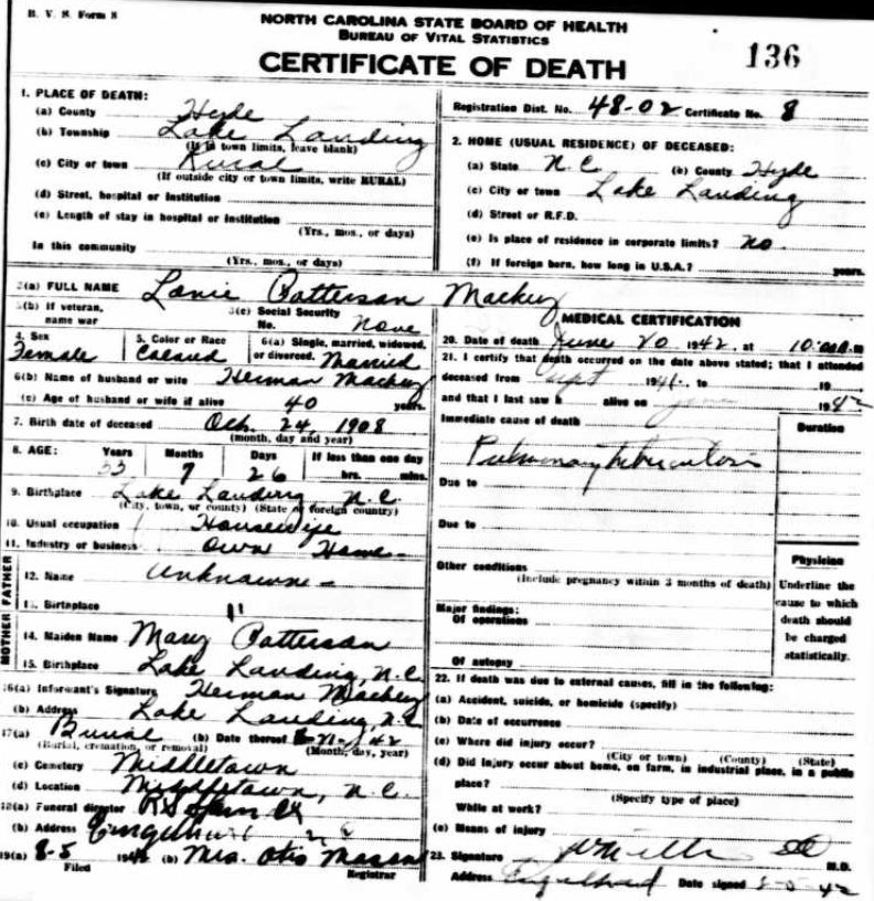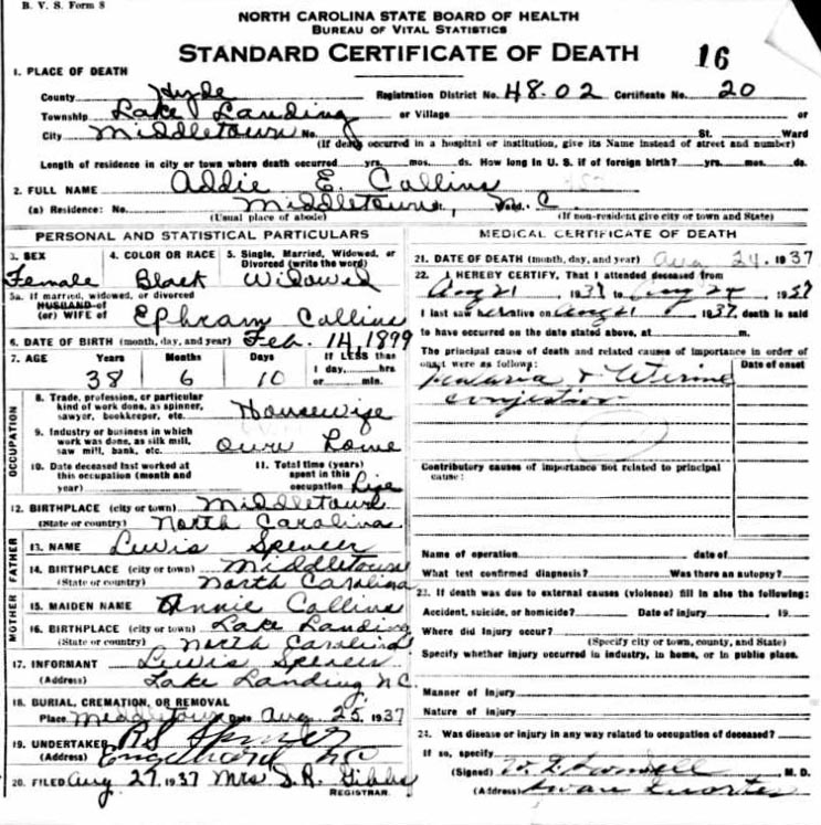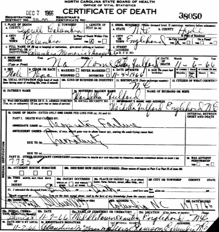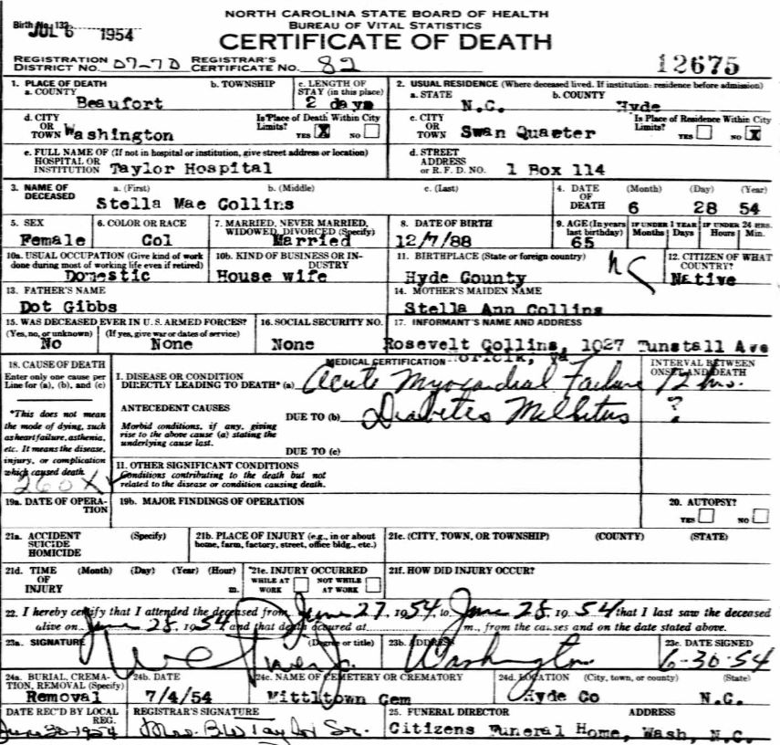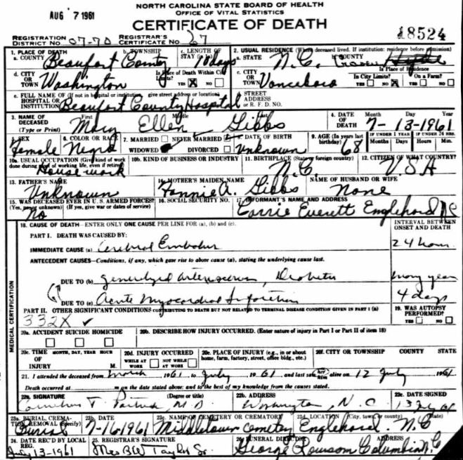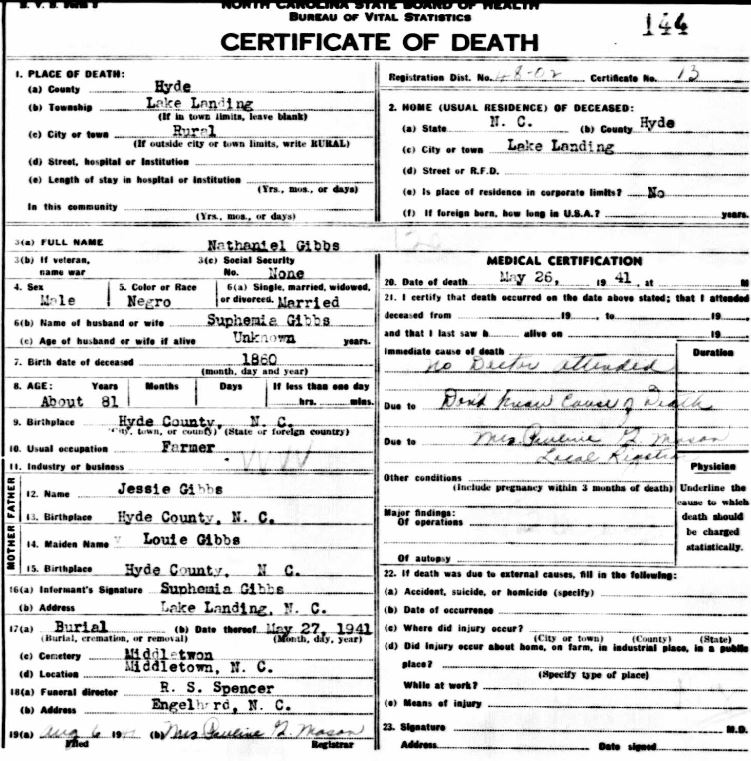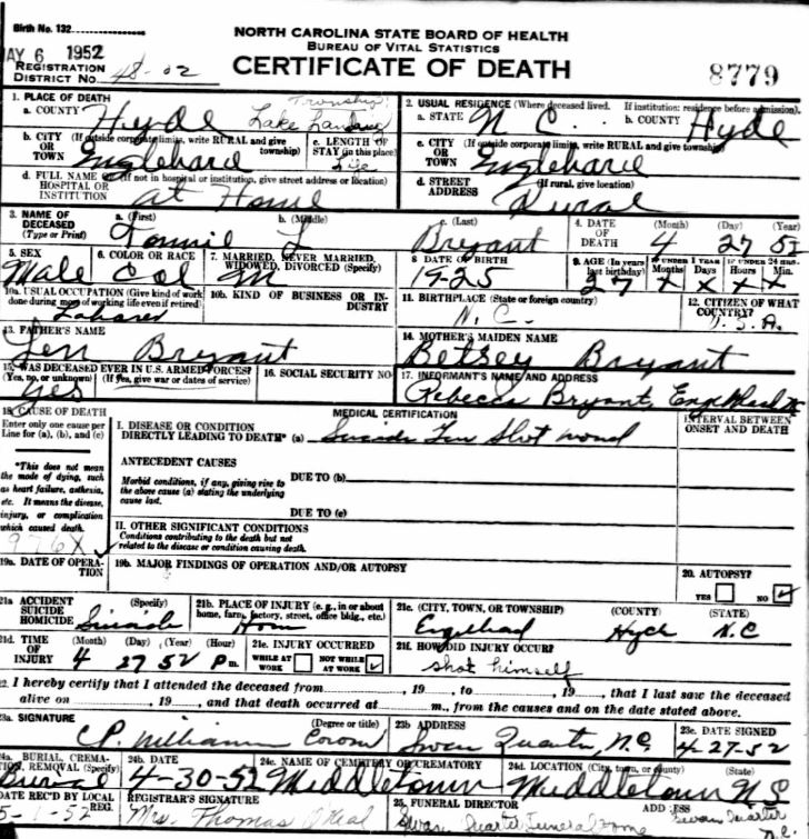 Nov. 25, 1940 | North Carolina Cook 347 Serv. En. QMC [see death certificate] |