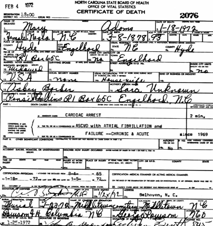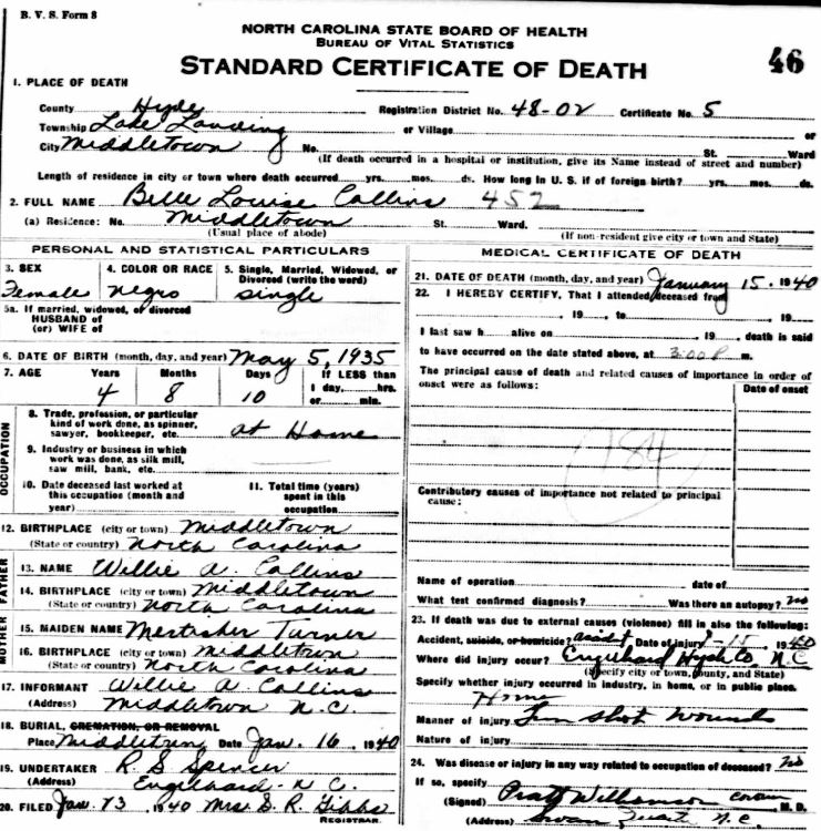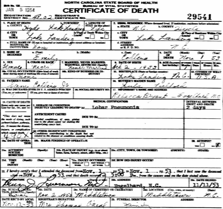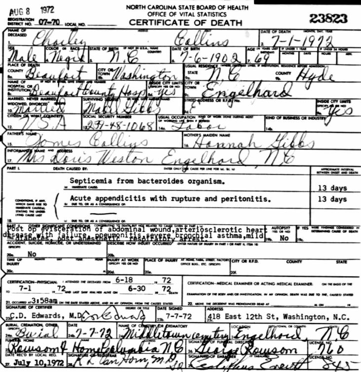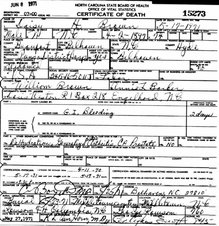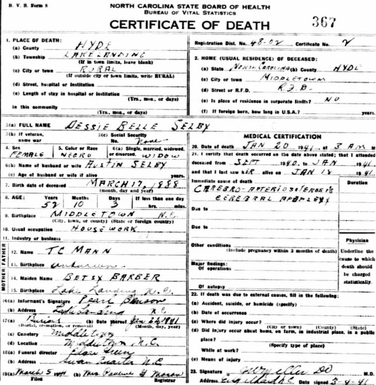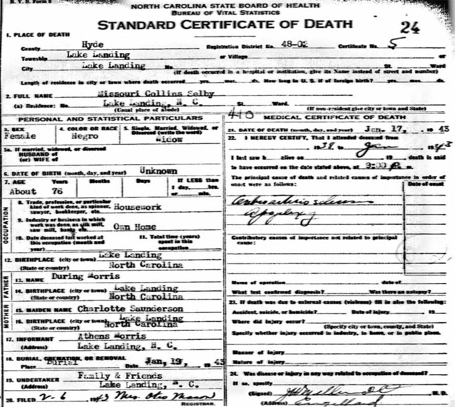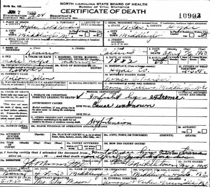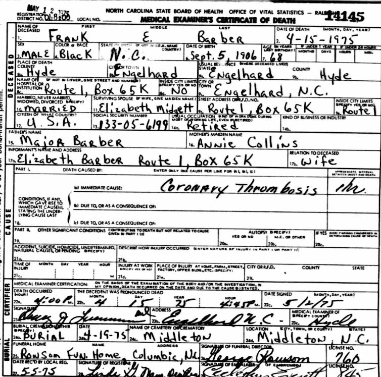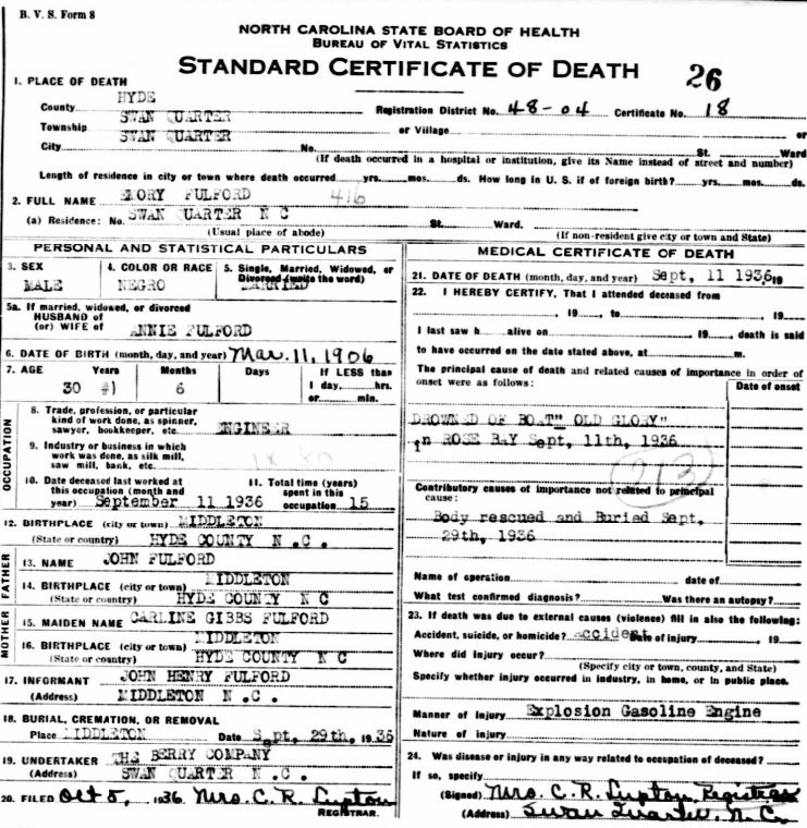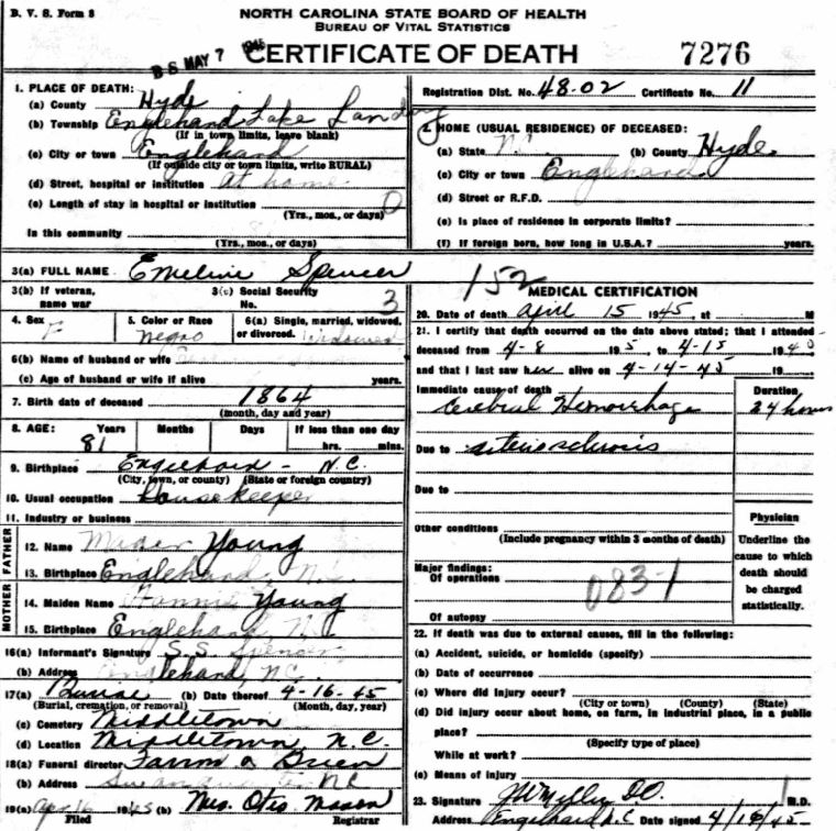 Nov. 25, 1940 | North Carolina Cook 347 Serv. En. QMC [see death certificate] |
