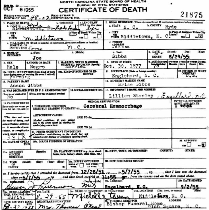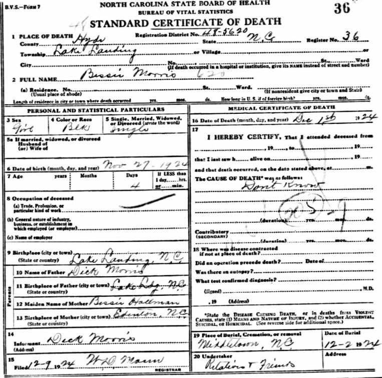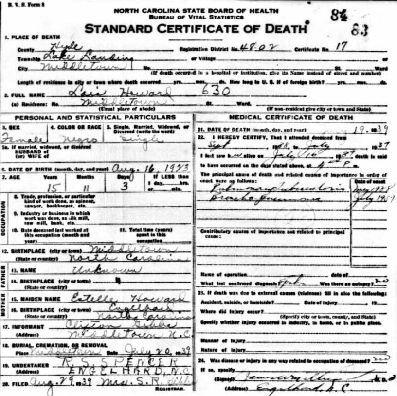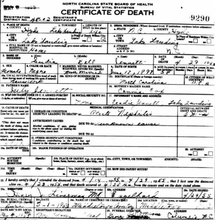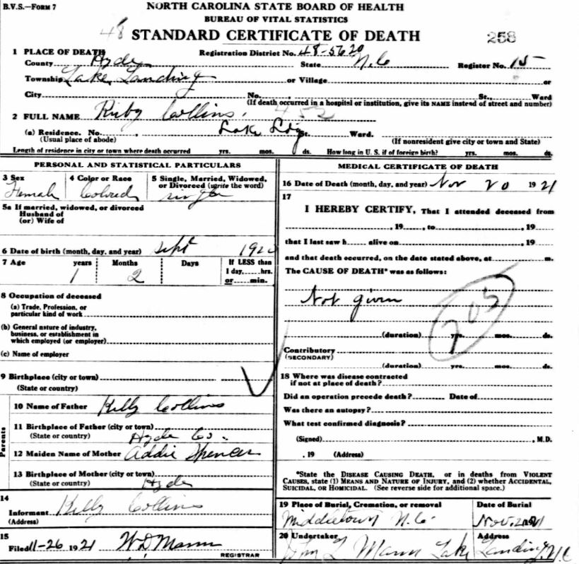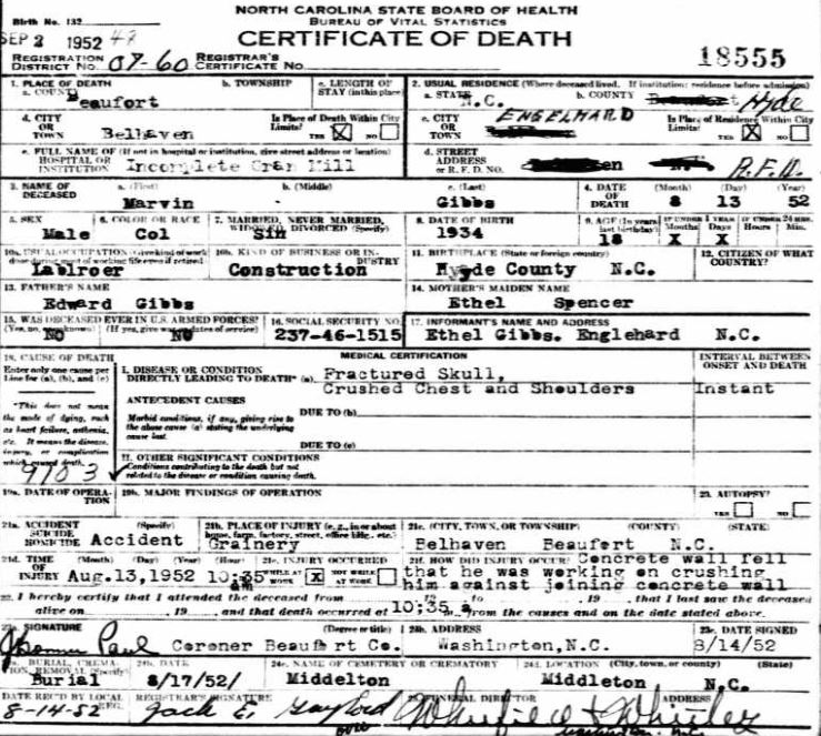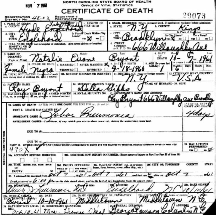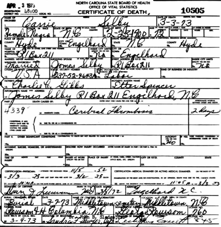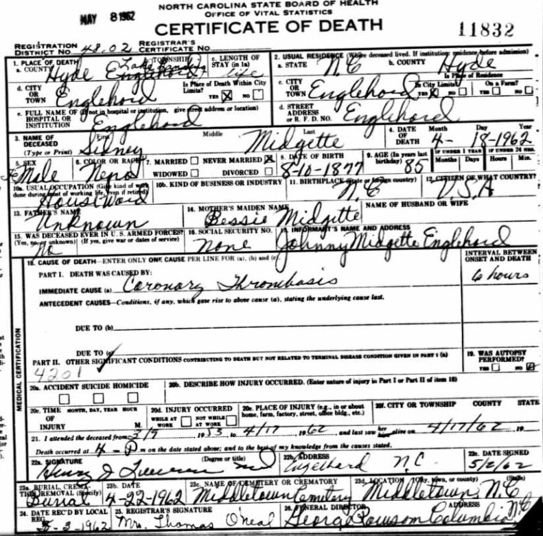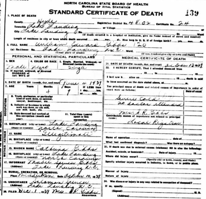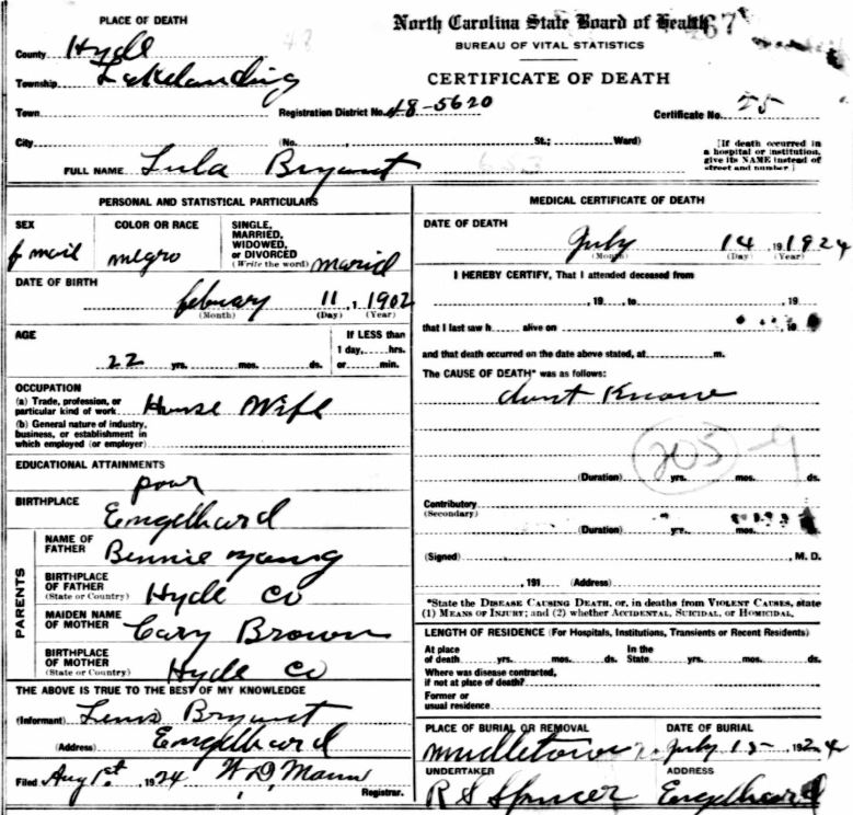 Nov. 25, 1940 | North Carolina Cook 347 Serv. En. QMC [see death certificate] |