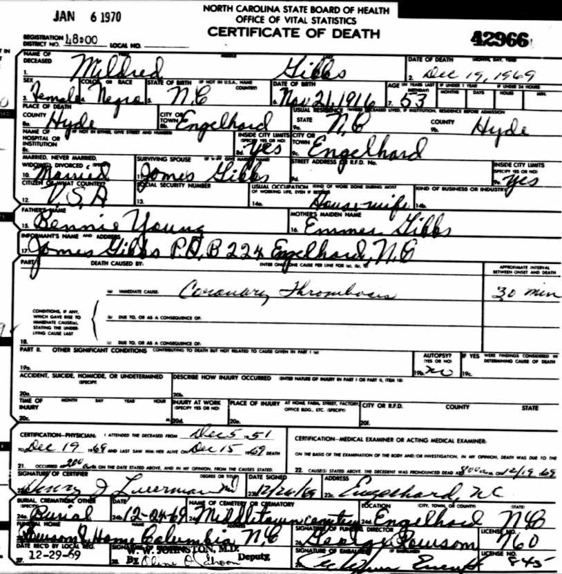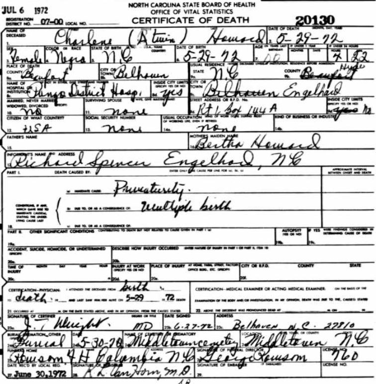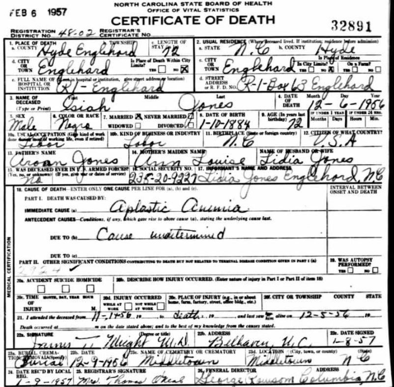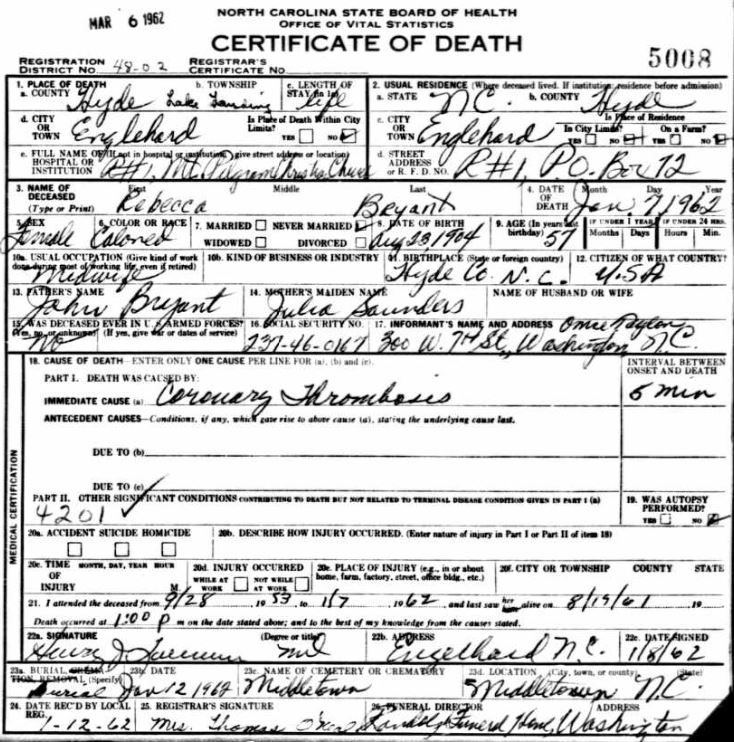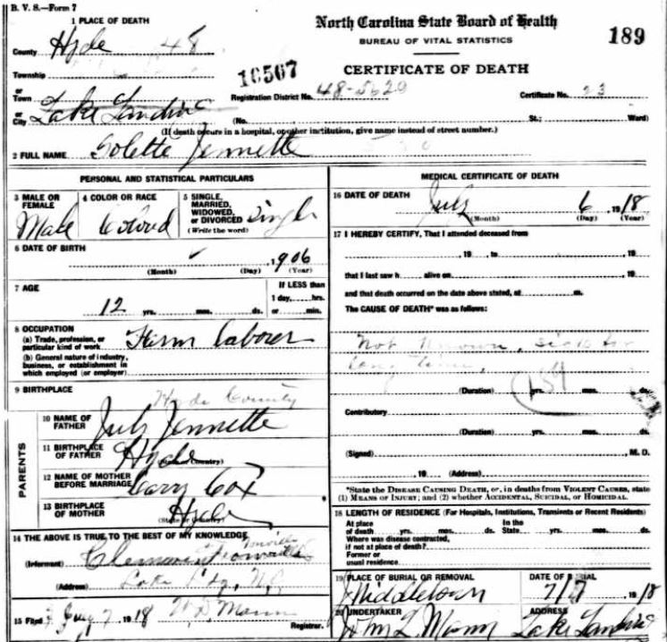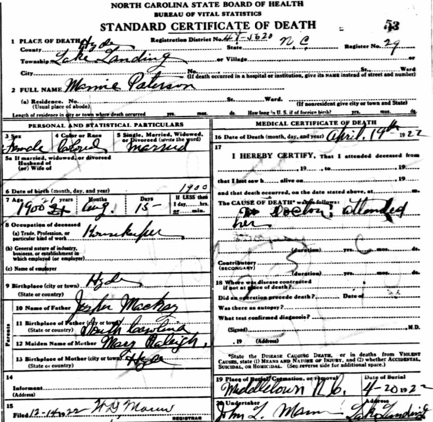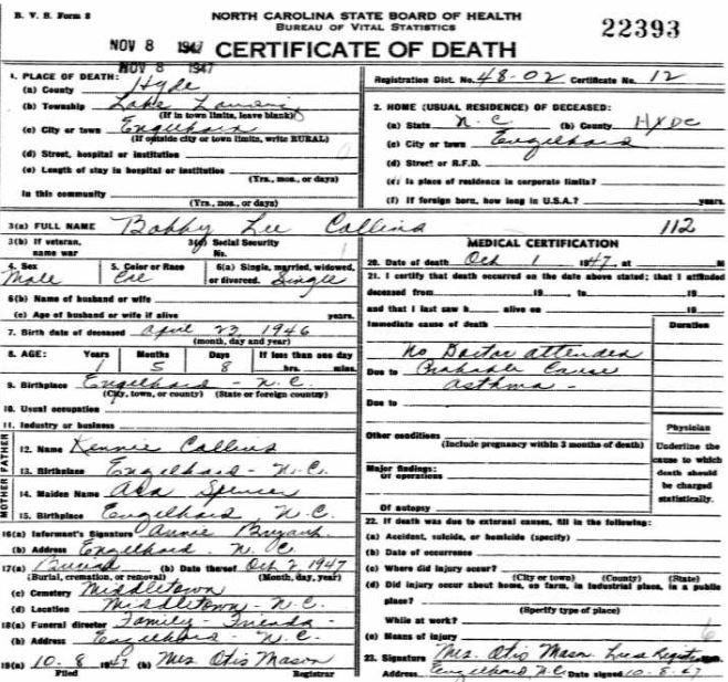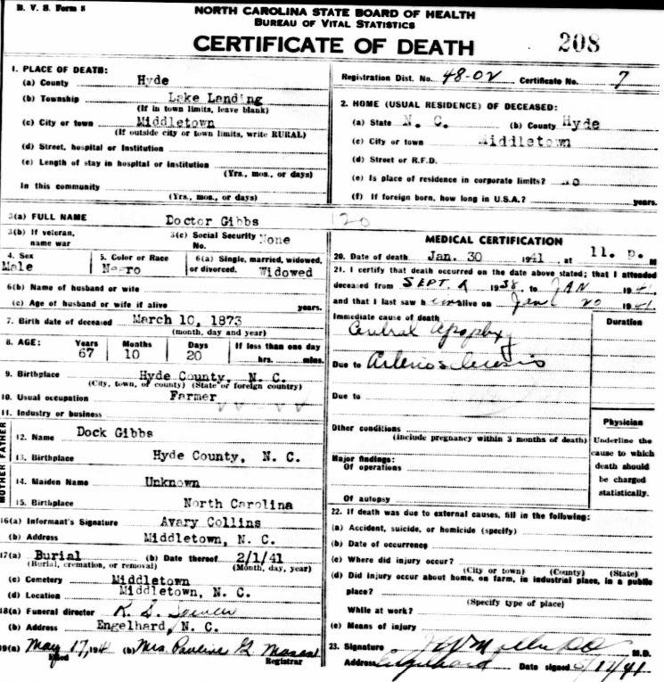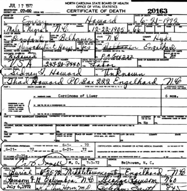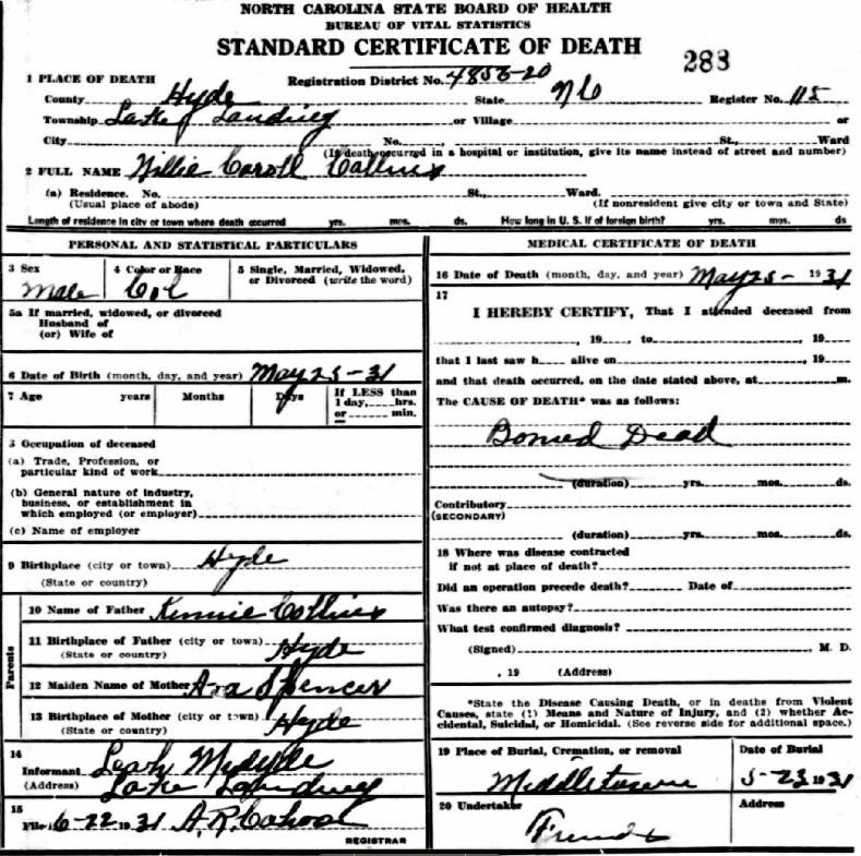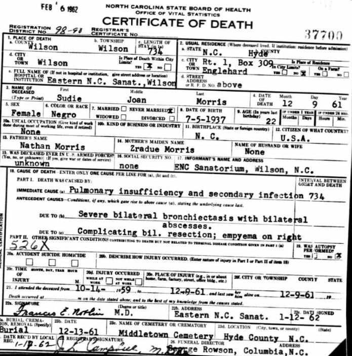 Nov. 25, 1940 | North Carolina Cook 347 Serv. En. QMC [see death certificate] |