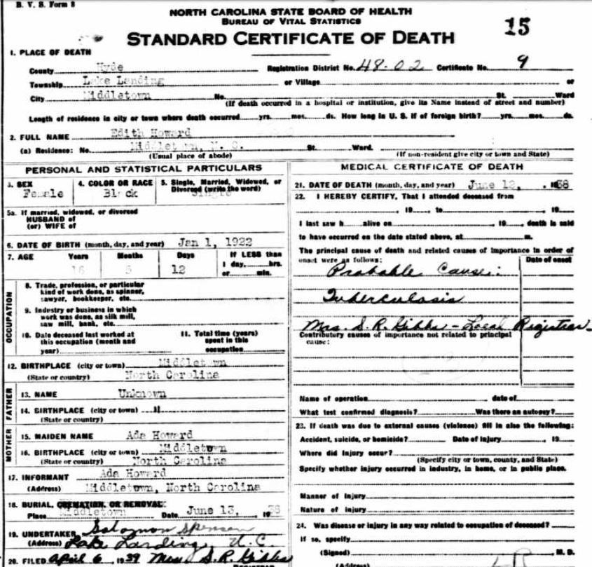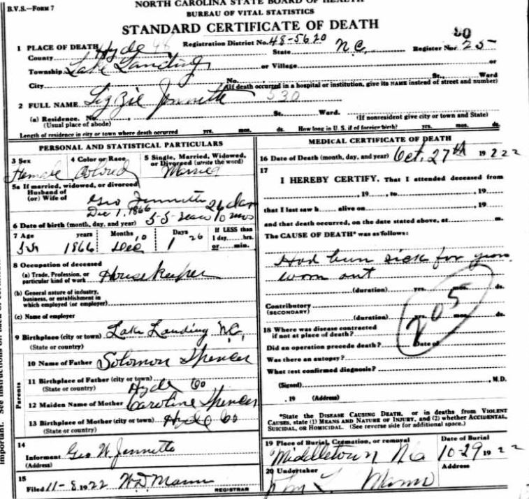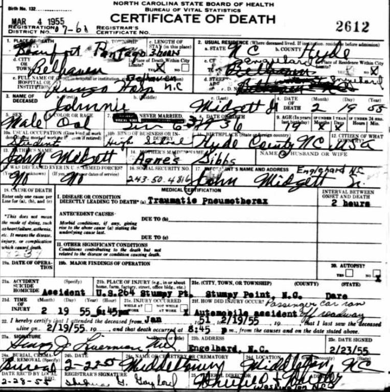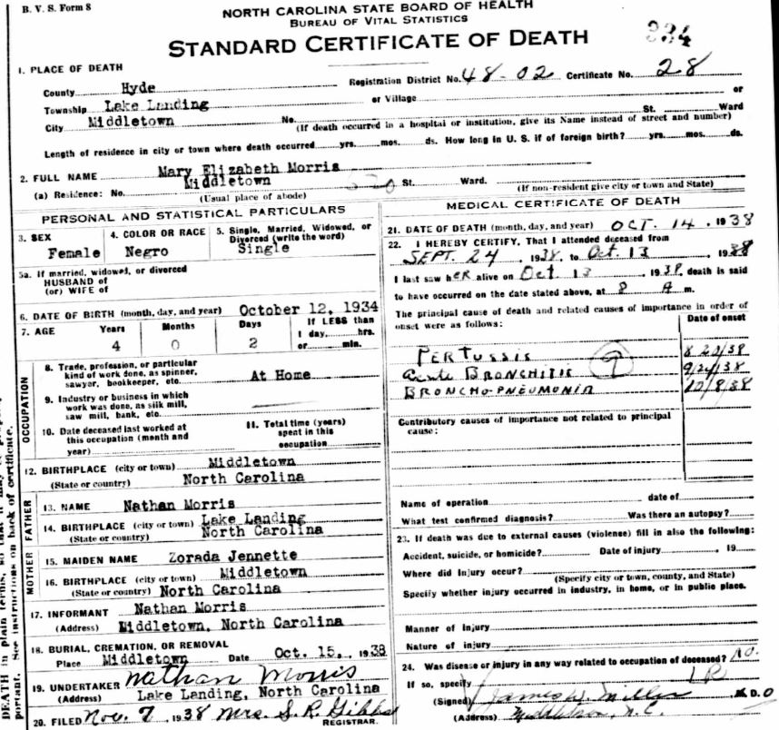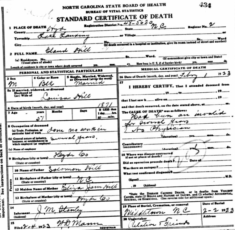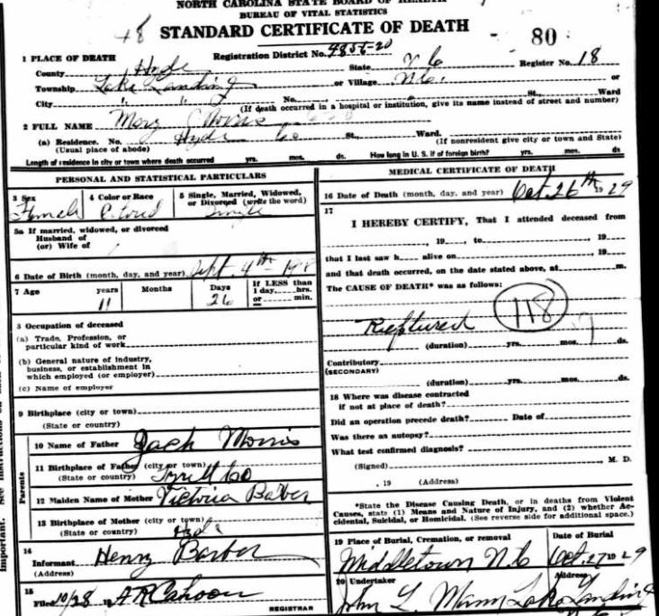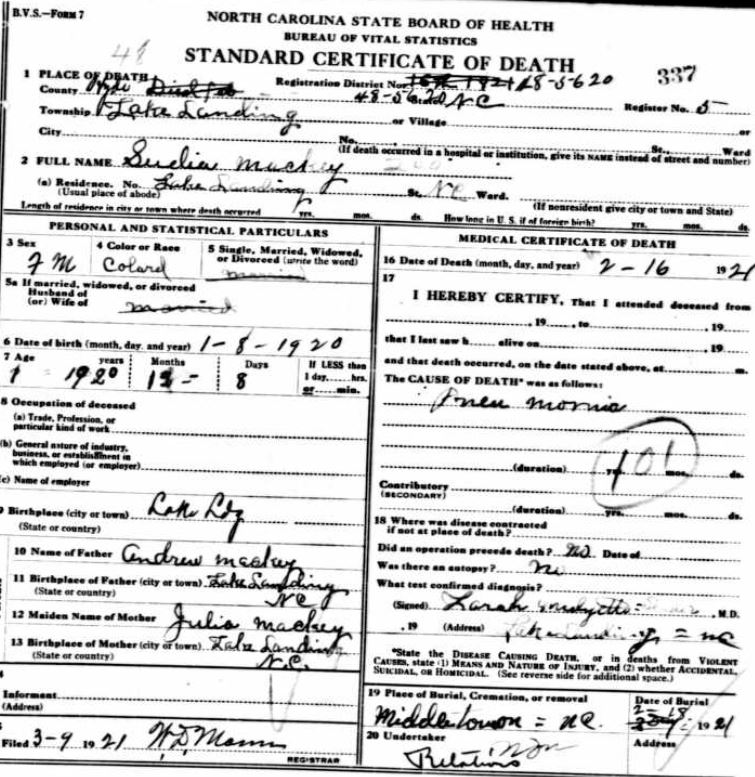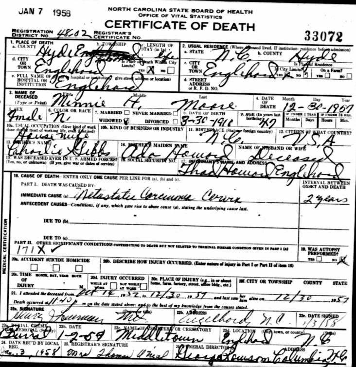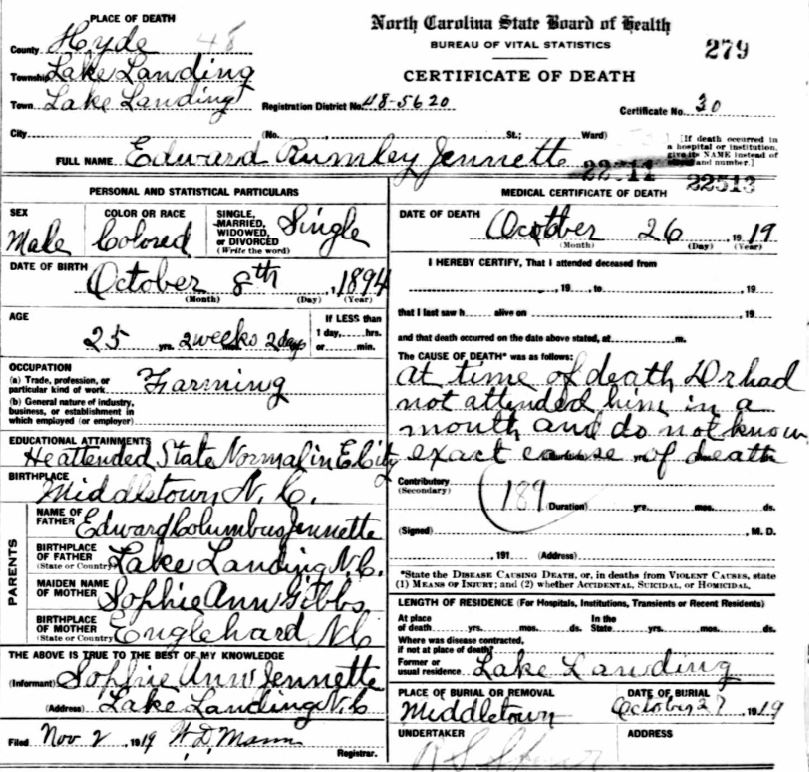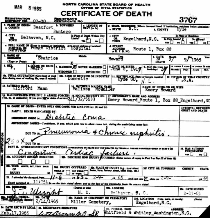 Nov. 25, 1940 | North Carolina Cook 347 Serv. En. QMC [see death certificate] |