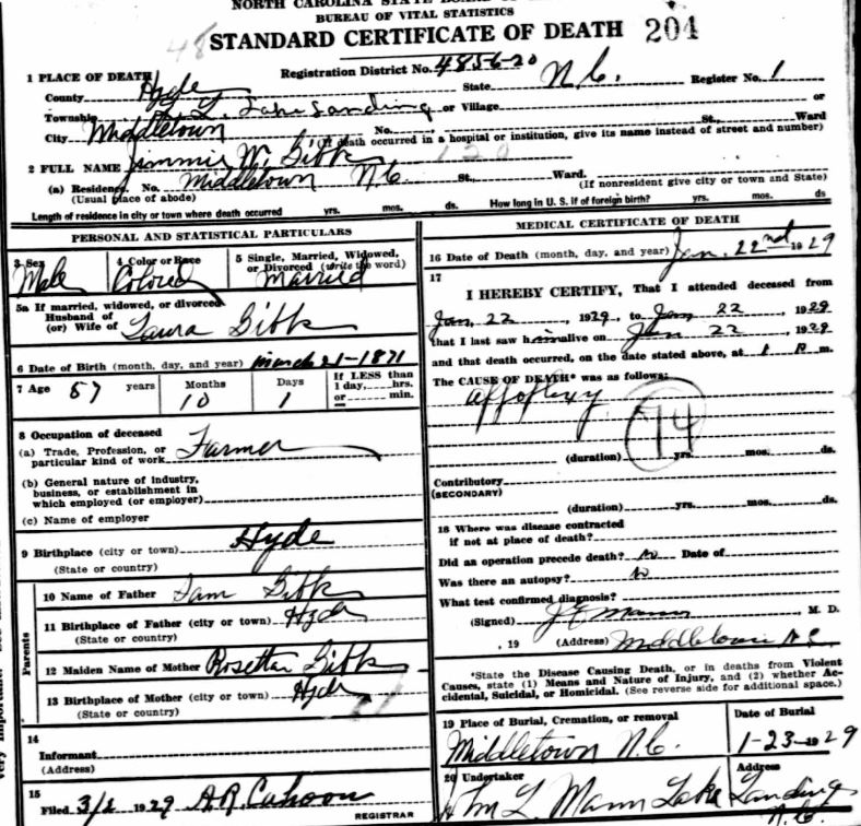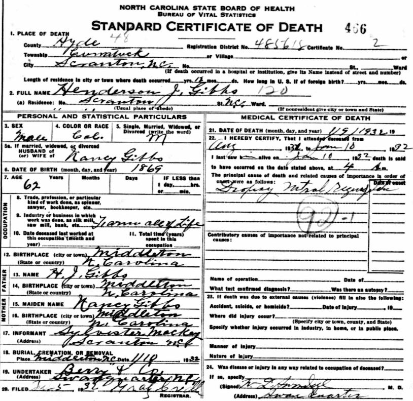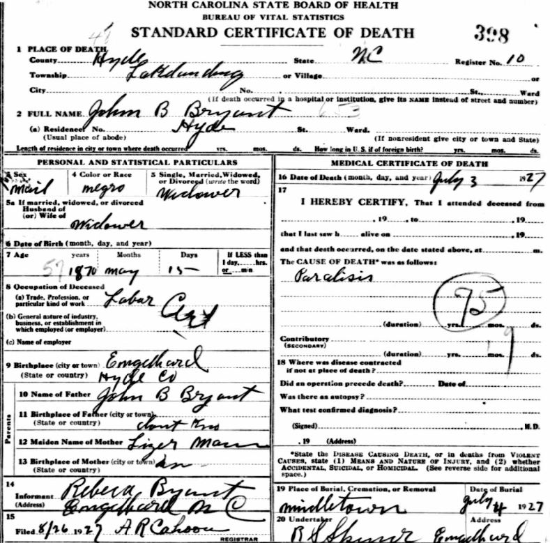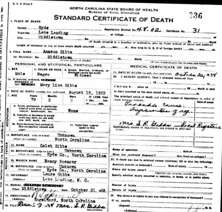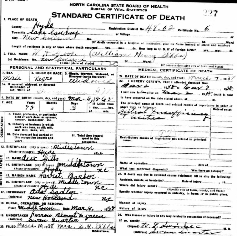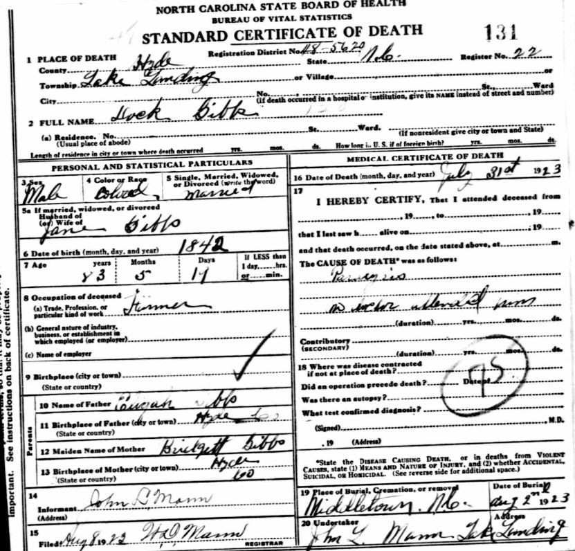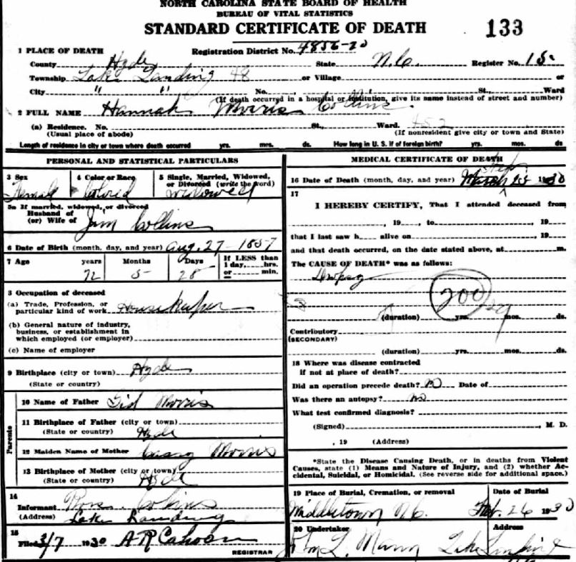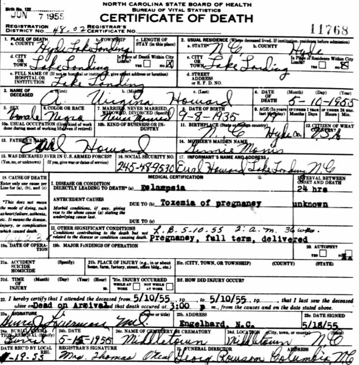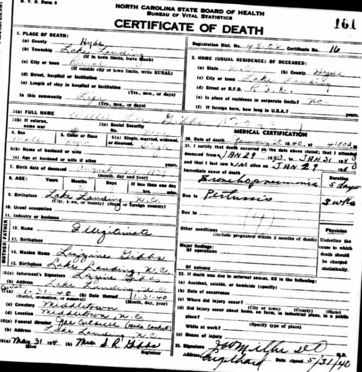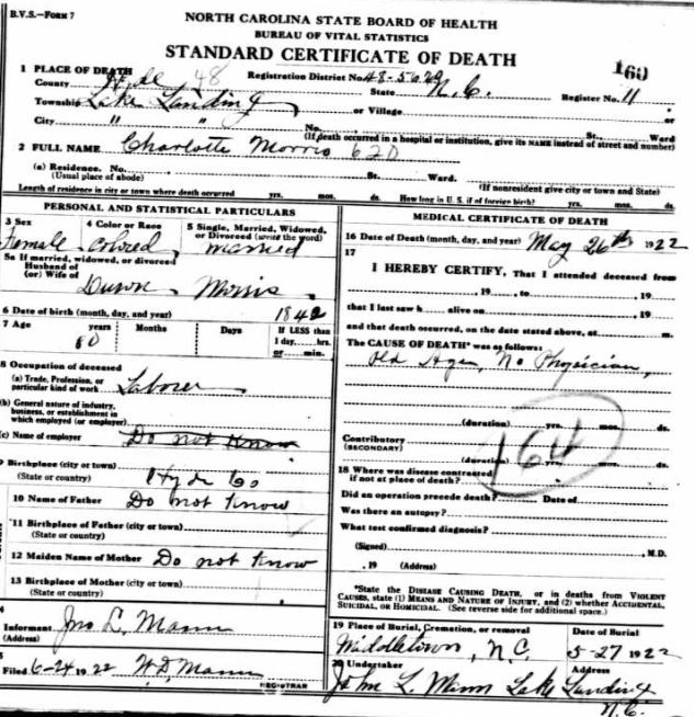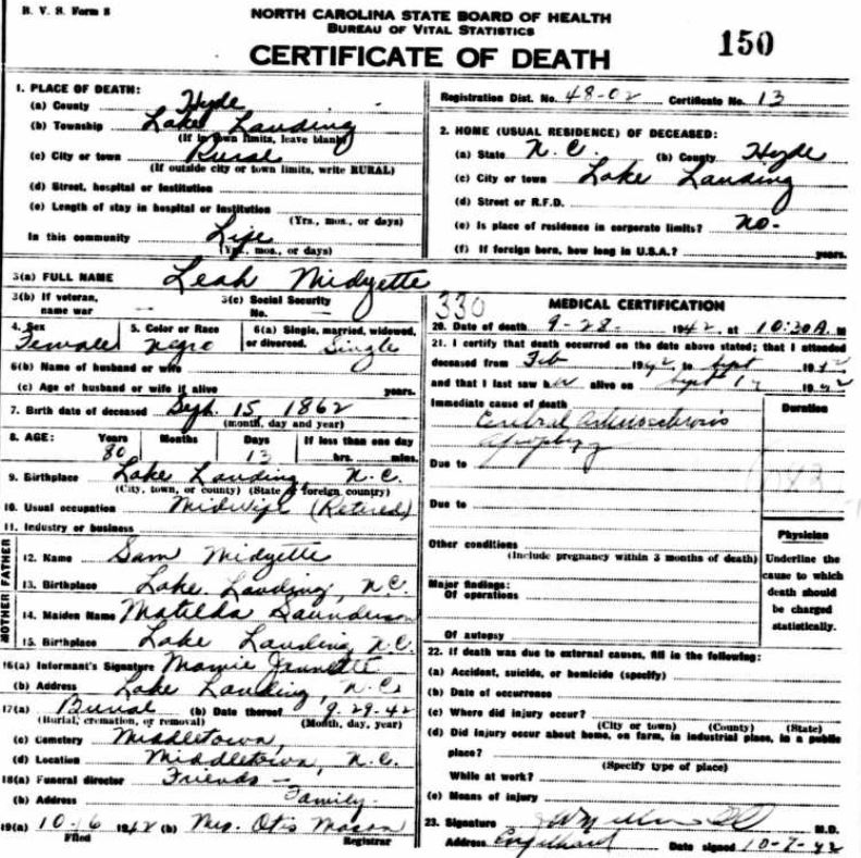 Nov. 25, 1940 | North Carolina Cook 347 Serv. En. QMC [see death certificate] |