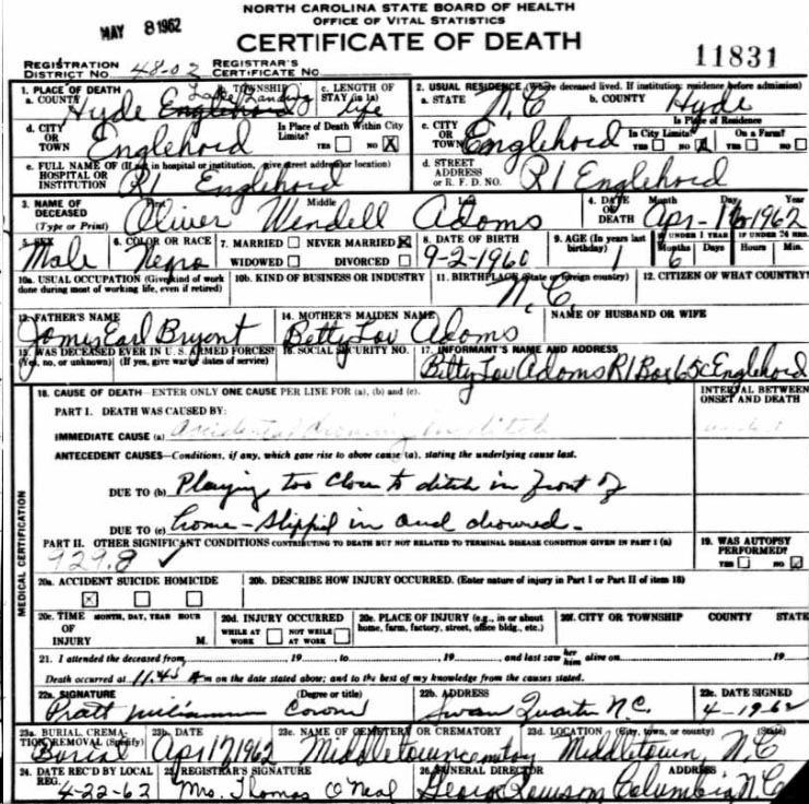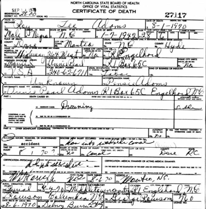 | Adams, Roy Lee | Jan. 7, 1942 | Aug. 1, 1970 | [see death certificate] |