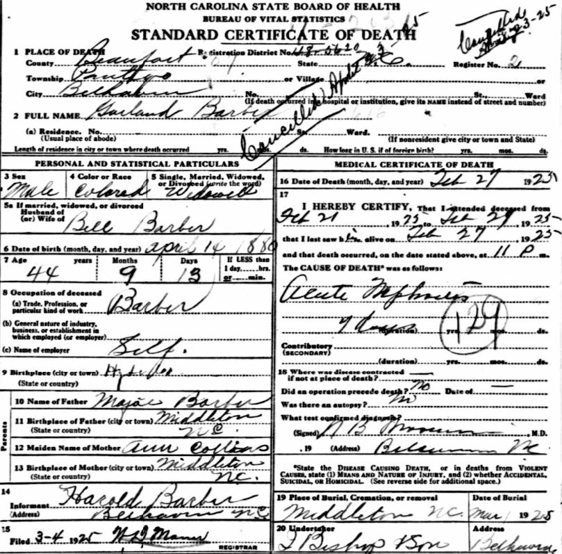 | Barber, Garland | Apr. 14, 1880 | Feb. 27, 1925 | [see death certificate] |