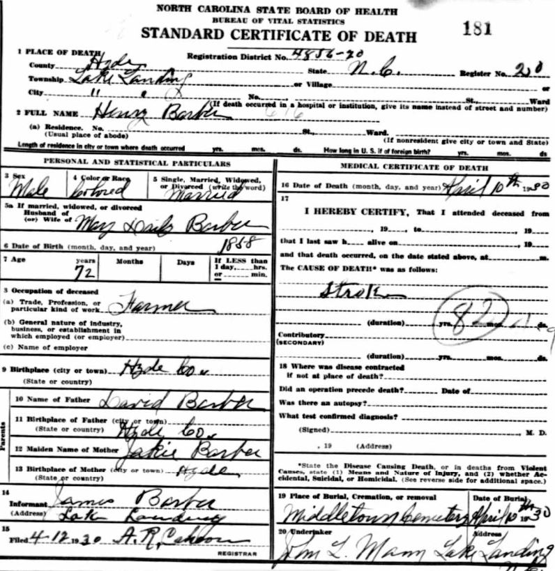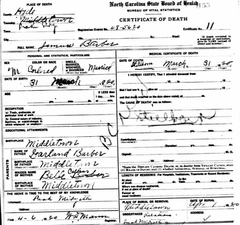 | Barber, James | Mar. 31, 1920 | Mar. 31, 1920 | [seedeath certificate] |