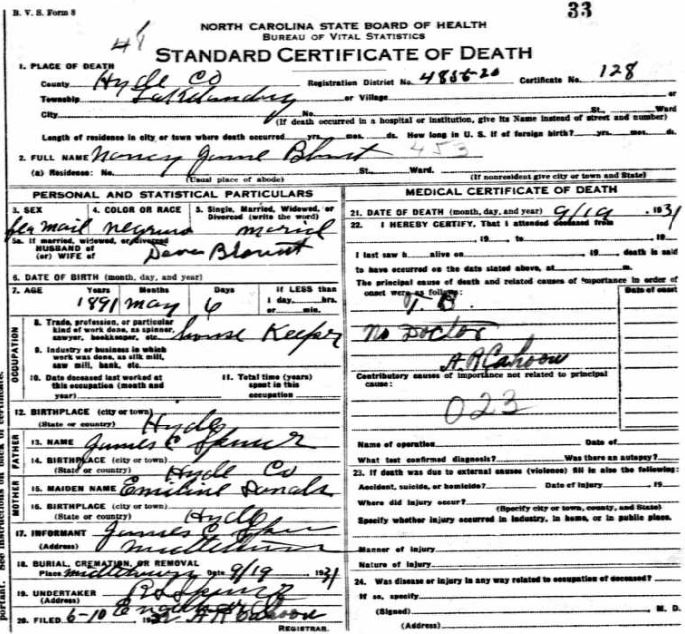 | Blount, Nancy Jane | May 6, 1991 | Sept. 19, 1931 | [seedeath certificate] |