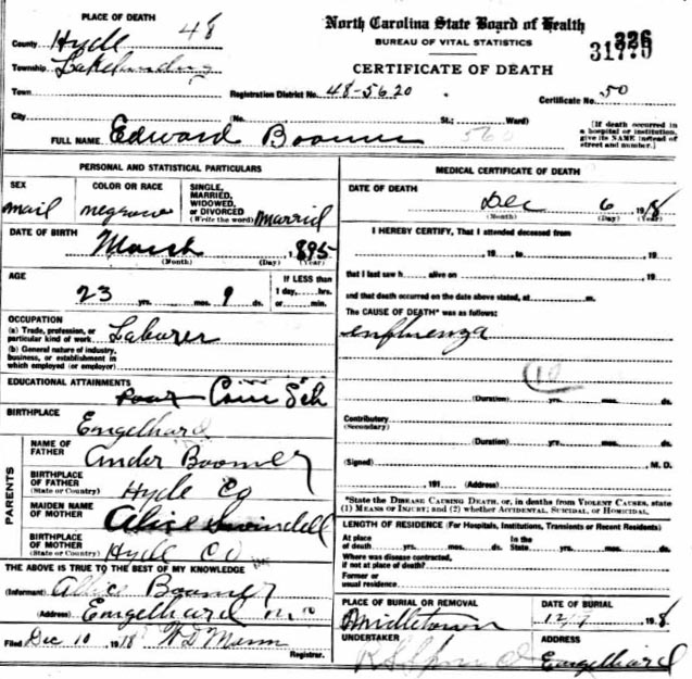 | Boomer, Edward | Mar. __, 1895 | Dec. 6, 1918 | [seedeath certificate] |